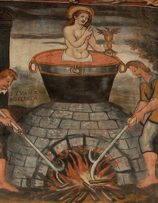 Como hablar de las 73 escenas pictóricas presentes en las paredes interiores del Santuario sería muy extenso, me centrarme sólo en aquellas que nos hablan de otros testimonios de santos que sufrieron martirio, ya que estos son de gran importancia para nuestra fe, pues sus vidas son también modelo de entrega total a Dios.
