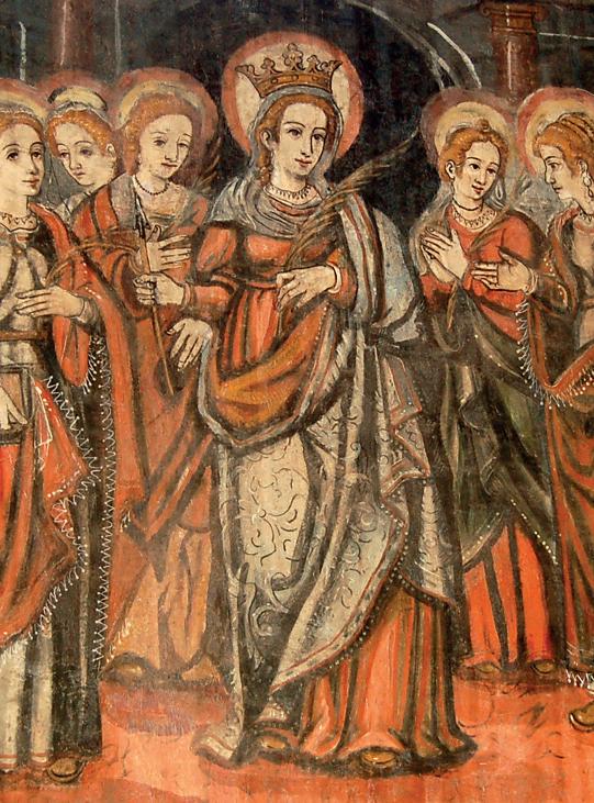En las pinturas murales de la nave central de la Ermita de Santa Eulalia, nos encontramos con una serie de escenas que representan a 15 santos y santas que también recibieron la corona del martirio (En el Muro de la Epístola, tenemos a catorce de ellos, y en el Muro del Evangelio, a Santiago el Mayor).