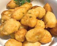 / 6 / Fem els bunyols amb les mans i els fregim en oli abundant fins que quedin daurats. Retirem sobre paper absorbent i el servim amb una gota de mel per sobre.