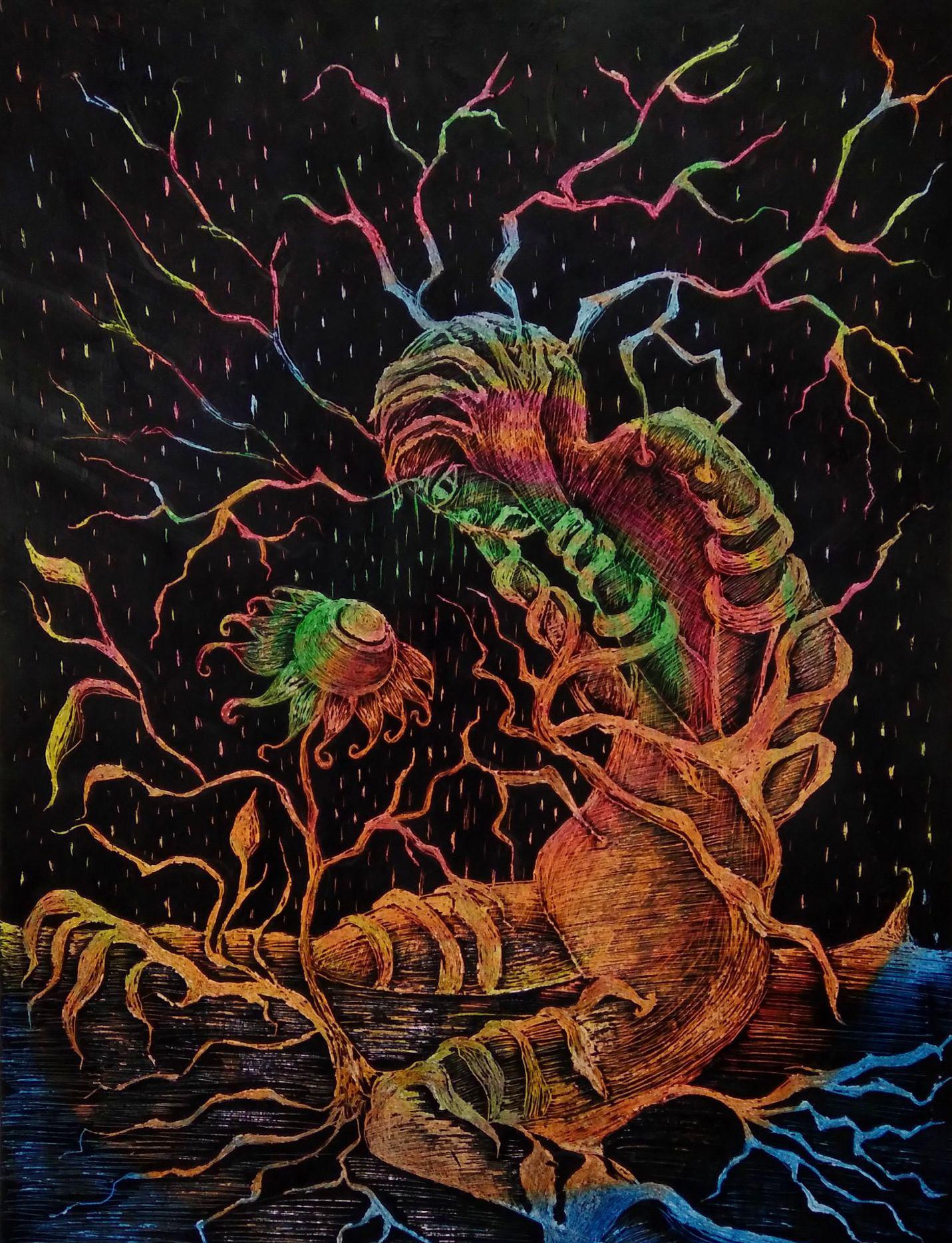 Estampillas Obra: La madre naturaleza nos está gritando -Anthony Campos, Artista visual emergente y diseñador gráfico. Nacido en Perú, Lima.