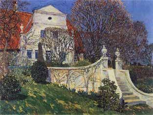 Levanta los hombros con un escalofrío. Las dudas han co menzado a roerlo igual que un gusano en una manzana de los árboles que él protege y cuida. Presiente lo infructuoso de sus esfuerzos por simular una armonía y escenificar un mun do paradisíaco frente al telón de fondo de la Barkenhoff. La grieta atraviesa el centro del mundo que creó. Se construyó una casa, cuyo lado que da al jardín, con su escalinata seño rial, es una fachada y trasluce cierta impostura. Sin embargo, en la parte antigua de la casa, en el hogar campesino, pervive todavía su amor por las cosas sencillas, por la honradez arte sanal y por esa claridad y sinceridad que caracterizan también los cuadros de Paula.
