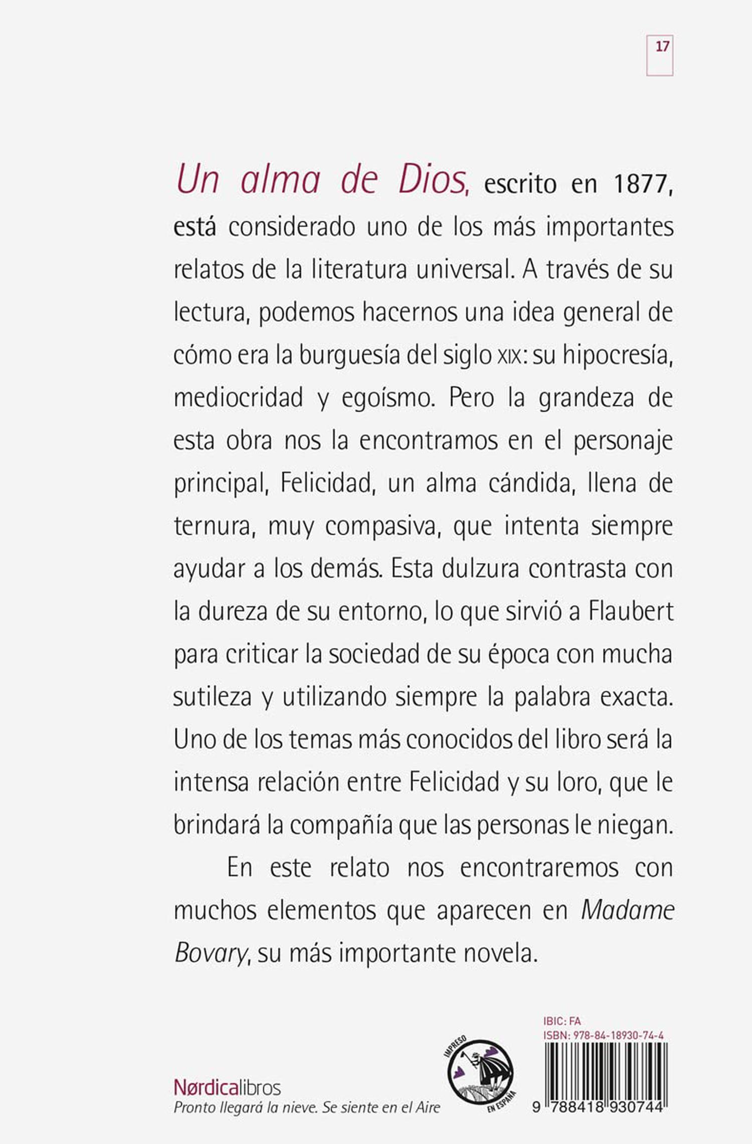 que se había esfumado. En el segundo piso, una claraboya iluminaba el cuarto de Felicidad, que daba a los prados. Felicidad se levantaba al amanecer, para no perder la misa, y trabajaba hasta la noche sin interrupción; después, terminada la cena, en orden la vajilla y bien cerrada la puerta, tapaba los tizones con la ceniza y se dormía ante la lumbre con el rosario en la mano. Nadie más tenaz que ella en el regateo. En cuanto a la limpieza, sus relucientes cacerolas eran la desesperación de las demás criadas. Ahorrativa, comía despacio, y recogía con el dedo las migajas del pan caídas sobre la mesa; un pan de doce libras cocido expresamente para ella y que le duraba veinte días. En toda estación llevaba un pañuelo de indiana sujeto en la espalda con un imperdible, un gorro que le cubría el pelo, medias grises, refajo encarnado, y