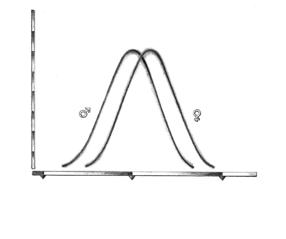 Una diferencia sexual puede afectar solo a la media (como ocurre en algunos test de habilidad lectora, en que las mujeres tienen una media más elevada), solo a la variación (como vemos en el CI, en que hay más variación entre los hombres) o a ambos valores, como vemos con la altura. En los siguientes grá cos vemos re ejados los dos primeros casos.