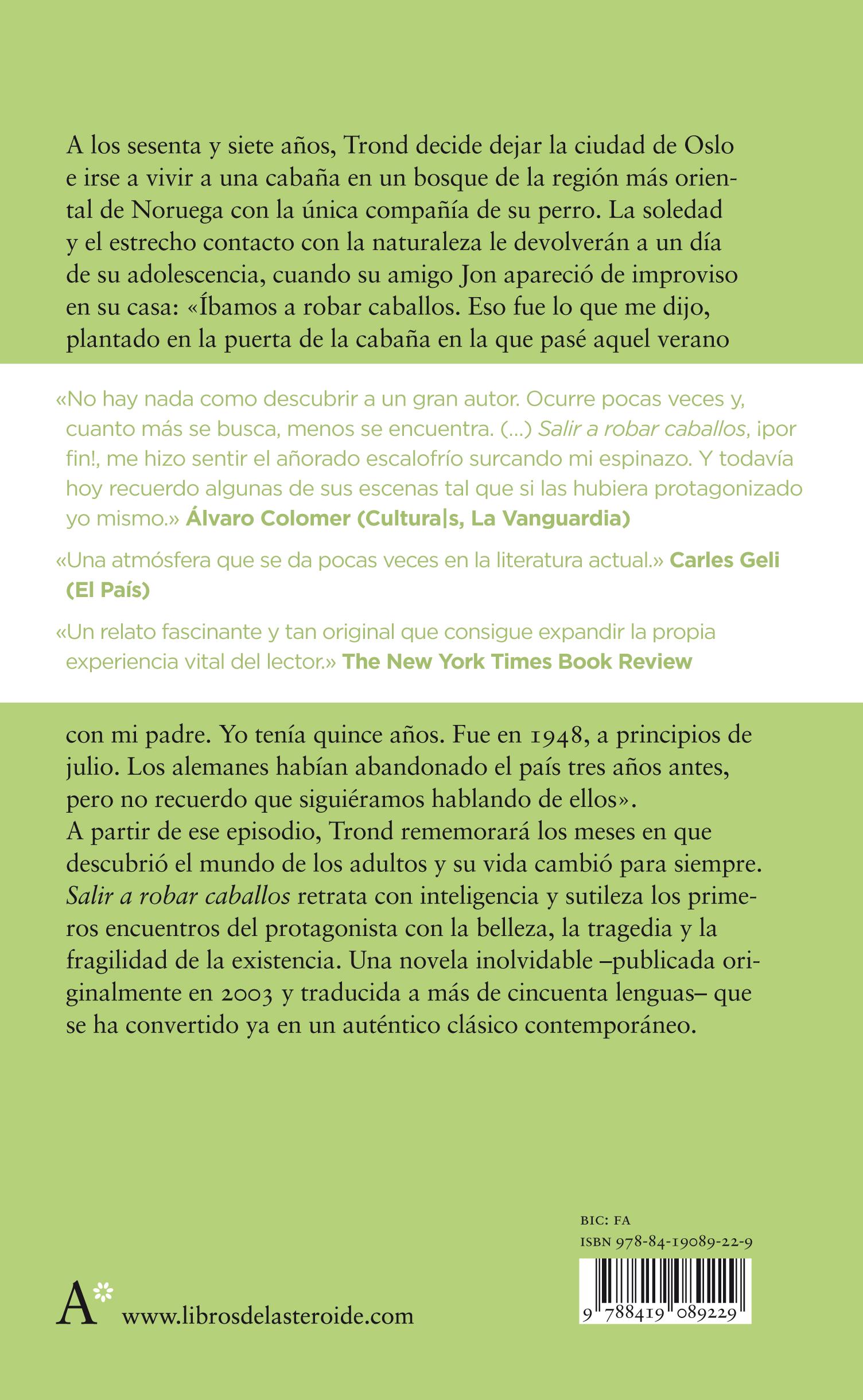 No me hizo ninguna gracia, todo hay que decirlo; casi nunca tocaba aquella escopeta, pero me daban mucha pena los corzos, tampoco era cosa de pedirle a ella que lo hiciera y no había nadie más en casa. Mi hermano mayor estaba embarcado en alta mar y mi padrastro andaba por el bosque talando árboles para el terrateniente de la zona, como solía hacer en aquella época del año. Así que agarré la escopeta, salí y atravesé las eras en dirección al bosque. Al llegar, no vi al perro por ningún lado. Me quedé quieto, escuchando. Era otoño y a mediodía el aire estaba muy claro, había tanta calma que resultaba casi desagradable. Me volví y miré por encima de los huertos hacia la casa, donde sabía que mi madre estaría mirando por la ventana, sin perderse uno solo de mis movimientos. No iba a librarme de esa. Volví a mirar hacia el bosque, a través del sendero, y de pronto aparecieron los dos corzos, venían corriendo hacia mí. Hinqué la rodilla en el suelo, levanté la escopeta y apo-