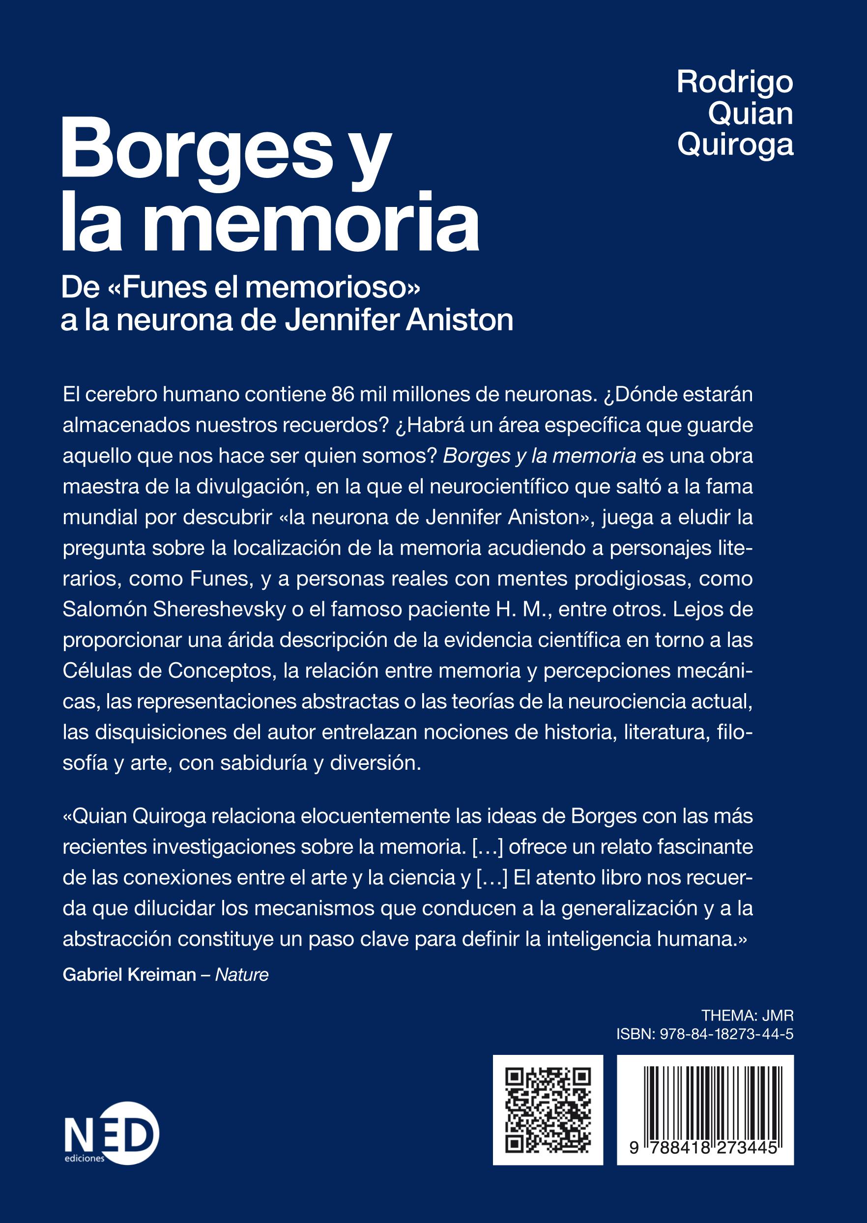 María KodamaQuian Quiroga relaciona elocuentemente las ideas de Borges con las más recientes investigaciones sobre la memoria. A partir de «Funes el memorioso», el ensayo de 1942 de Borges, y de examinar experimentos reales y sus consecuencias, Quian Quiroga ofrece un relato fascinante mostrando las conexiones entre el arte y la ciencia.