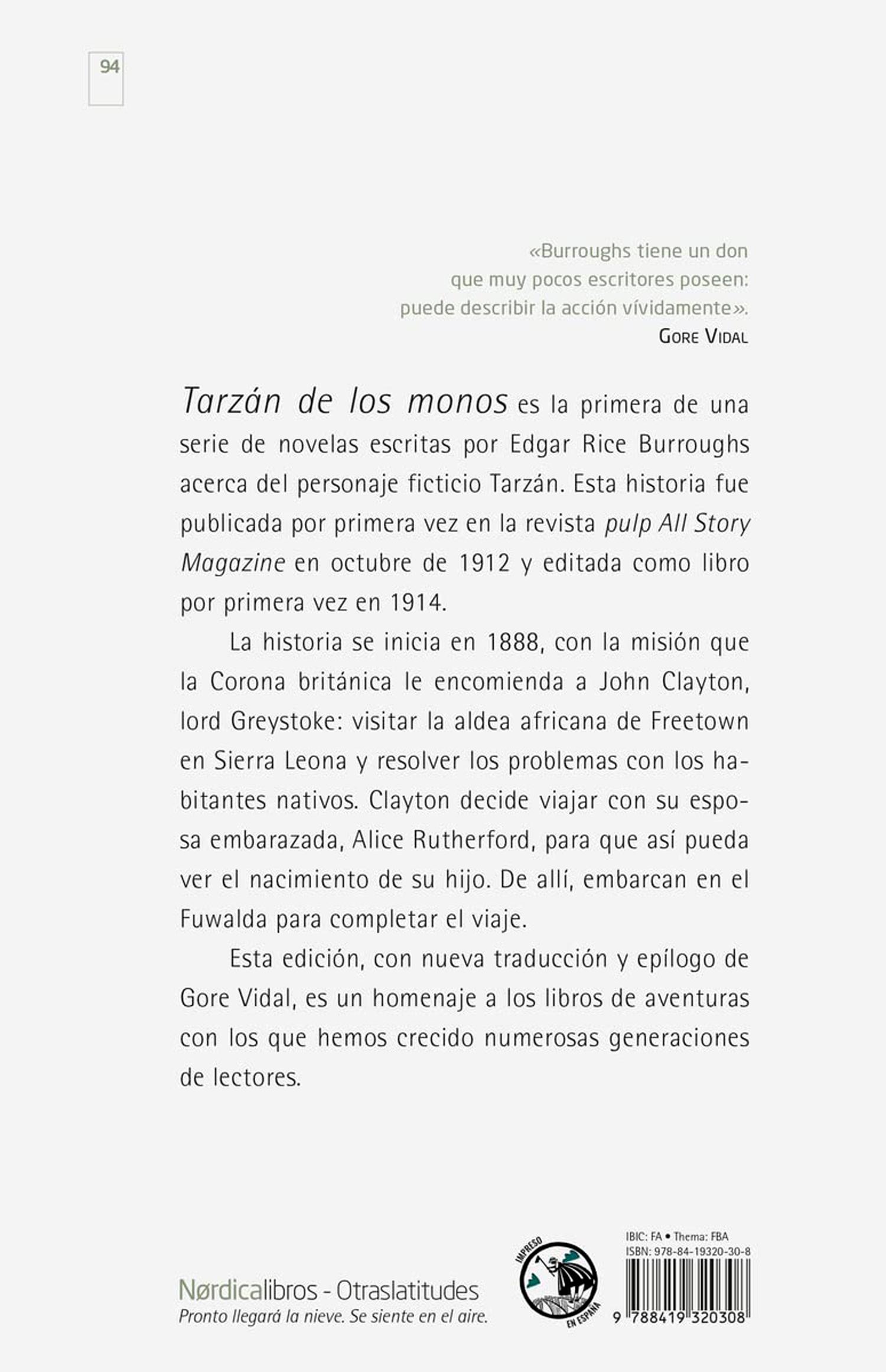 Si no la consideran verosímil, al menos coincidirán conmigo en que es única, excepcional e interesante. De los registros del Ministerio de las Colonias y del diario del finado concluimos que un joven noble inglés —a quien llamaremos John Clayton, lord Greystoke— recibió el encargo de llevar a cabo una investigación particularmente delicada de la situación en una colonia británica de la costa occidental africana entre cuyos inocentes habitantes nativos era sabido que otra potencia europea estaba reclutando soldados para sus tropas indígenas, dedicadas exclusivamente a la confiscación forzosa de caucho y marfil a las tribus salvajes de las orillas del Congo y el Aruwimi. Los nativos de la colonia británica lamentaban que muchos de sus jóvenes eran seducidos con promesas hermosas y radiantes, pero pocos, si acaso alguno, regresaban con sus familias.