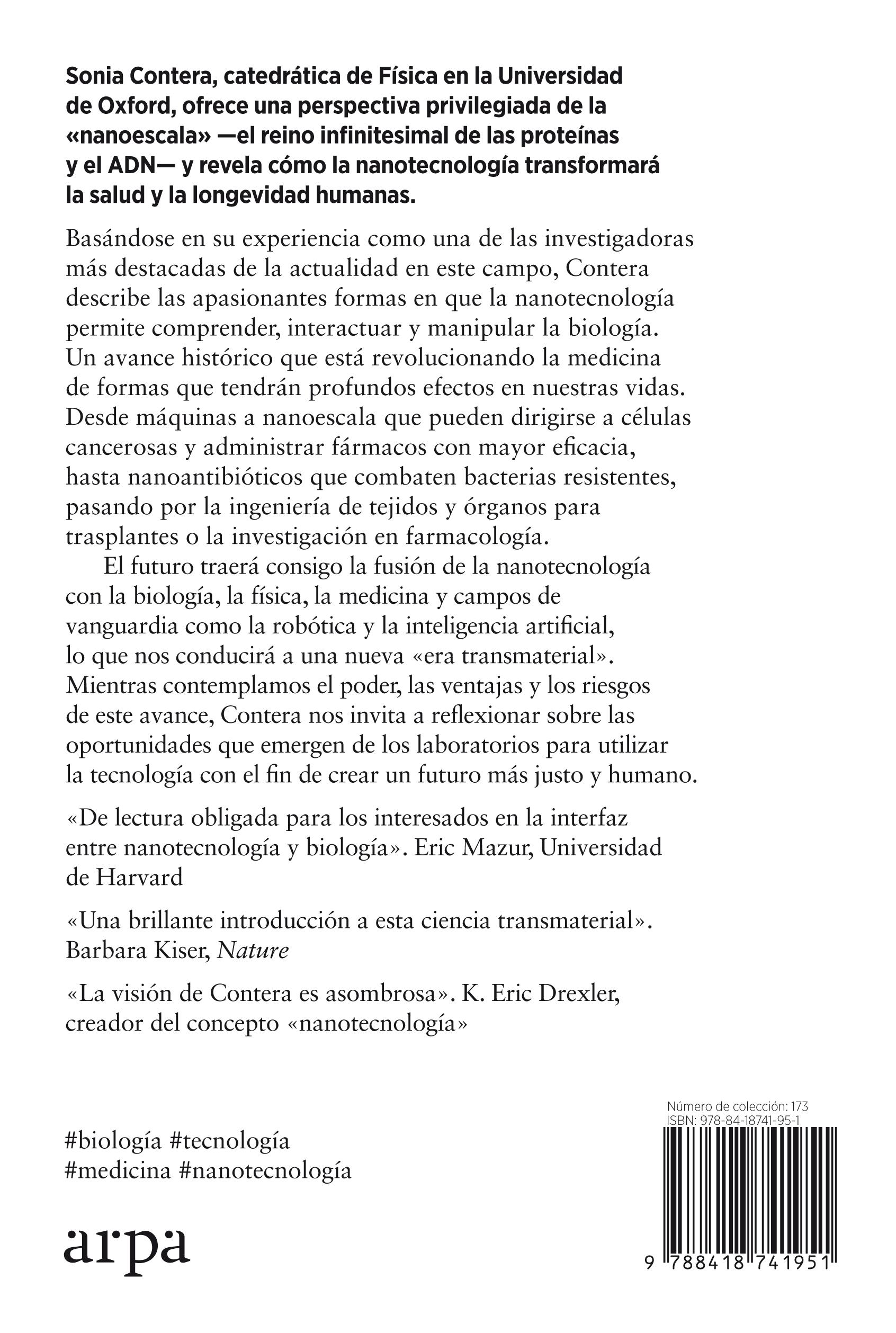 La primera edición de este libro se publicó en inglés con el título Nano comes to life: How nanotechnology is transforming medicine and the future of biology en 2019, simultáneamente en Estados Unidos y en el Reino Unido. El libro ha cambiado mi vida de muchas maneras y ha atraído la atención del público científico y no científico en muchos lugares del mundo, motivando nuevas ediciones en inglés y otros idiomas. Es una alegría para mí poder traducir el libro para Arpa Editores y conectar así con los lectores en mi lengua materna. Esta oportunidad se propició a través de una entrevista sobre el libro que me hizo Javier Salas para el periódico El País en 2022, que leyó mi editor, Joaquín Palau. Les estoy muy agradecida a los dos. Esta edición en español es oportuna porque los temas centrales del libro, la nanotecnología en medicina y biología, la transformación de las ciencias y tecnologías que convergen con la biología en el siglo XXI y su efecto en las personas, han tomado un carácter importante desde el inicio de la pandemia de COVID-19 a principios de 2020. Cuando las nanovacunas de Moderna y BioNTech-Pfizer hicieron su aparición casi milagrosa en 2021 transformaron nuestras vidas