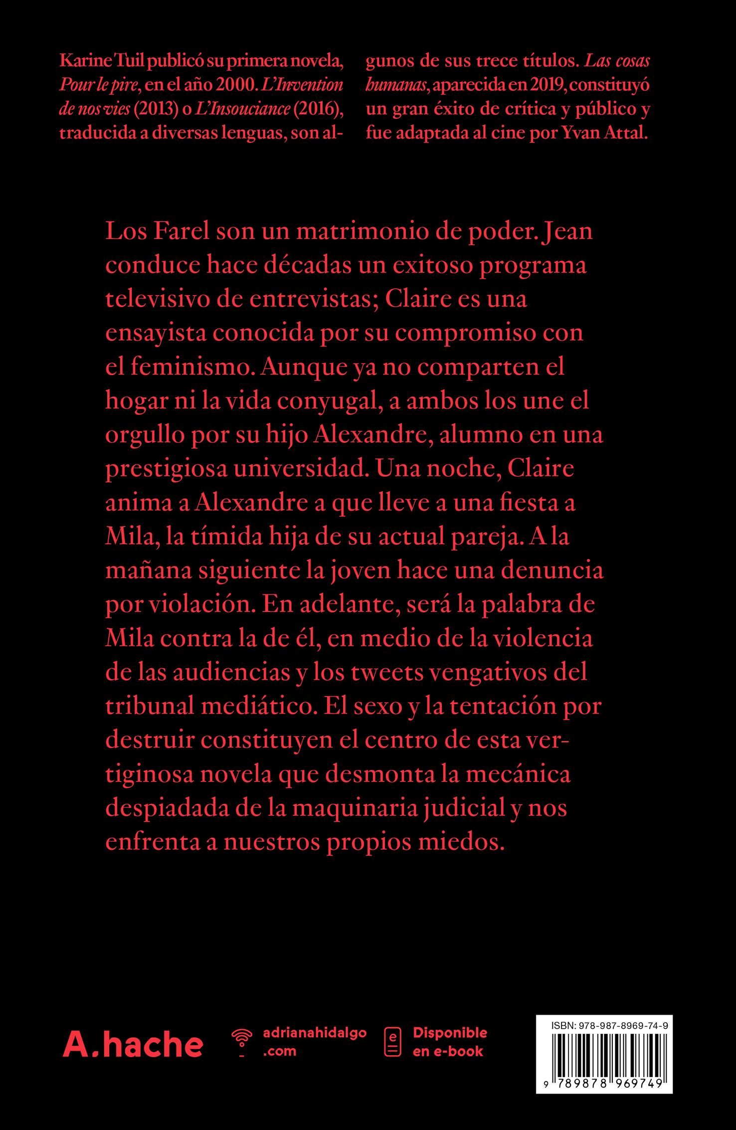 De aquel trío de pasantes ambiciosas, la única que hasta entonces había escapado del escándalo era ella, Claire Davis-Farel, hija de un profesor de Derecho en Harvard, Dan Davis, y de una traductora francesa de lengua inglesa, Marie Coulier. La mitología familiar contaba que sus padres se habían conocido delante de la Sorbona y que después de algunos meses de una relación a distancia se habían casado en los Estados Unidos, en los suburbios de Washington, donde habían llevado una vida tranquila y monótona –Marie había renunciado a todos sus sueños de emancipación para ocuparse de su hija y convertirse en aquello que siempre había temido ser: un ama de casa cuya única obsesión era la de no olvidar tomar su anticonceptivo–. Había vivido su maternidad como una alienación, no estaba hecha para eso, no había descubierto la revelación del instinto materno, incluso se había deprimido profundamente después del nacimiento, y si su marido no le hubiera encontrado algunos trabajos de traducción, habría terminado su vida con antidepresivos, habría seguido exhibiendo esa sonrisa falsa y afirmando públicamente que su vida era fantástica, que era
