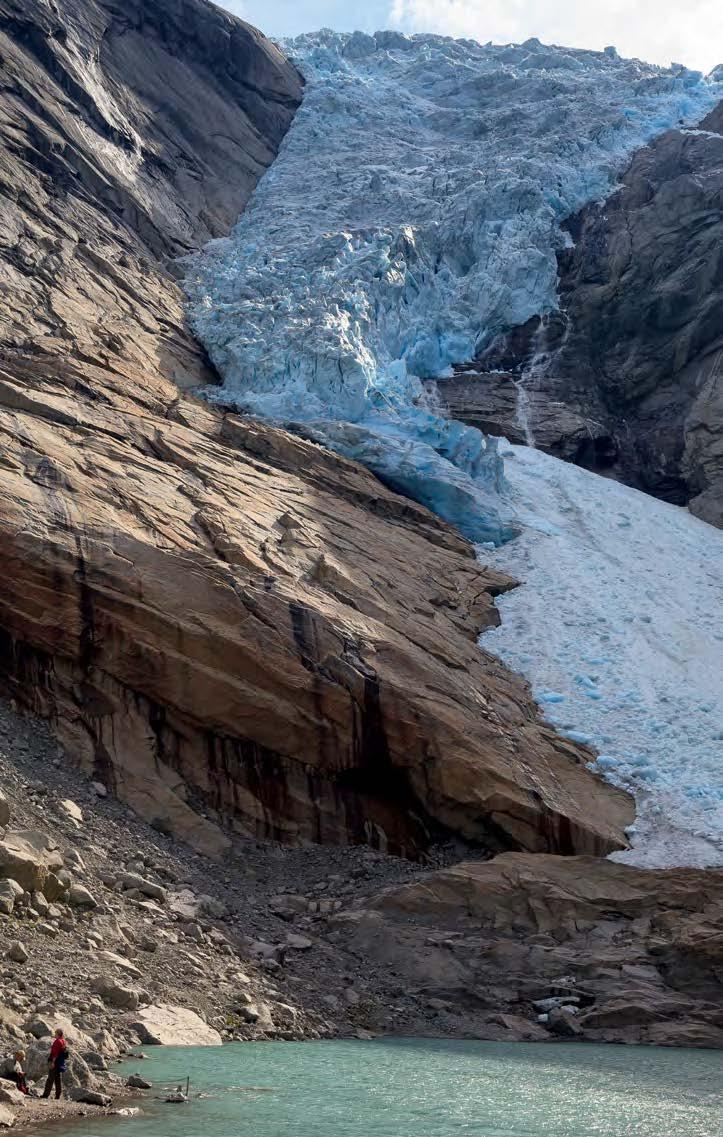 Muy distinta, aunque no menos grandiosa, es la experiencia que nos proporciona Jostedalsbreen, el glaciar rey de esta parte de Noruega que sólo descubre toda su belleza cuando se le recorre a pie, a través de un paseo guiado por un profesional. Es un mundo en sí y vale la pena ir explorando, sin prisas, sus distintas realidades, tanto en la zona de Briksdal, como en la de Nigards, donde la lengua de hielo está en perpetuo movimiento.