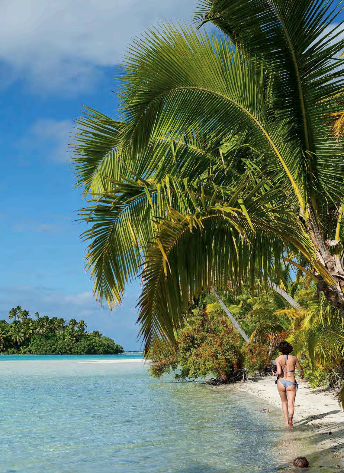 A 45 minutos en avioneta de Rarotonga, esta otra islita imprescindible podrá explorarse en moto o en bici a través de unos senderos entre palmeras, que parecen llevar al fin del mundo. De noche, bajo los inspiradores cielos estrellados del Hemisferio Sur, grupos familiares entretienen a los visitantes con sus ritmos tradicionales y danzas autóctonas. Podrá gozarse casi a solas de unas hermosas playas y de las ballenas jorobadas que, entre julio y octubre, se arriman hasta lo indecible a su costa. Aun con ello, la estrella de Aitutaki es su laguna: un triángulo perfecto de aguas impresionantes cercadas por el arrecife de coral que las separa del mar abierto y por las que flota una docena de lindos islotes desiertos, llamados motus.