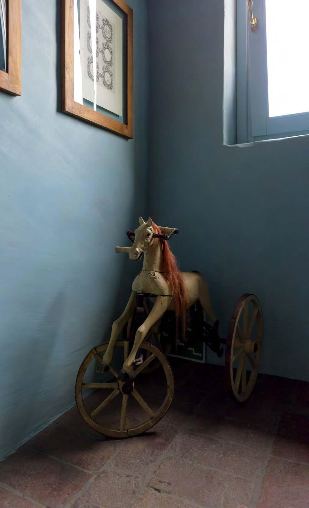 Pero la colección de arte más renombrada y prestigiosa de Franciacorta se encuentra en la empresa vinícola Ca’ del Bosco, una de las mejores de toda la región. Desde la entrada a su propiedad, el encuentro mágico entre arte y vino sorprende al visitante, cuando pasa por la maravillo sa puerta de bronce de Arnaldo Pomodoro (Cancel Solar, 1987). El blanco mármol de Carrara de la gran cabeza fracturada, esculpida por Igor Mitoraj (Héroes de Luz, 1991), domina la colina verde frente a la elegante recep ción. Sin embargo, cuando pude entrar a la parte producti va de la bodega, me quedé totalmente sin palabras: en una arquitectura encantadora y funcional, entre acero, madera y un sinnúmero de geniales maquinarias patentadas del enólogo Stefano Capelli, se encuentran por todos lados increíbles obras de arte, algunas integradas a los espacios de producción, otras suspendidas a unos metros de altura, como el enorme rinoceronte en fibra de vidrio y hormigón de Stefano Bombardieri (El peso del tiempo suspendido, 2003) o la instalación de Zheng Lu, inspirada en el movi miento natural del agua (Water in dripping, 2016).