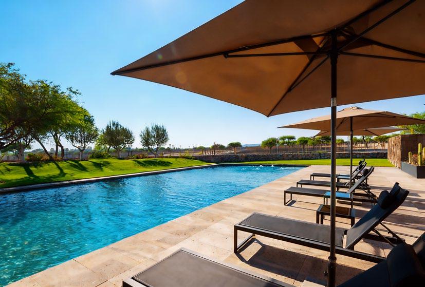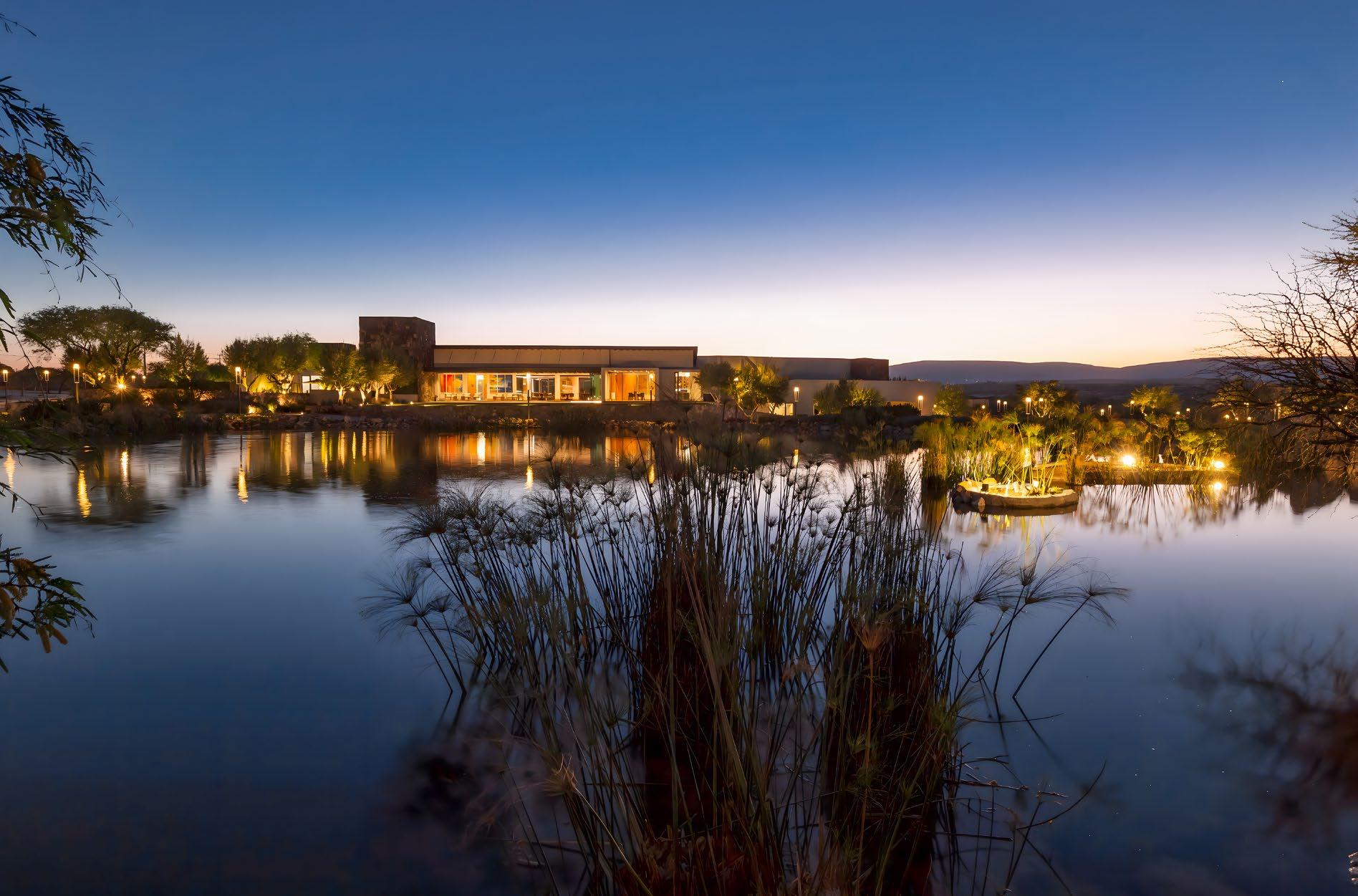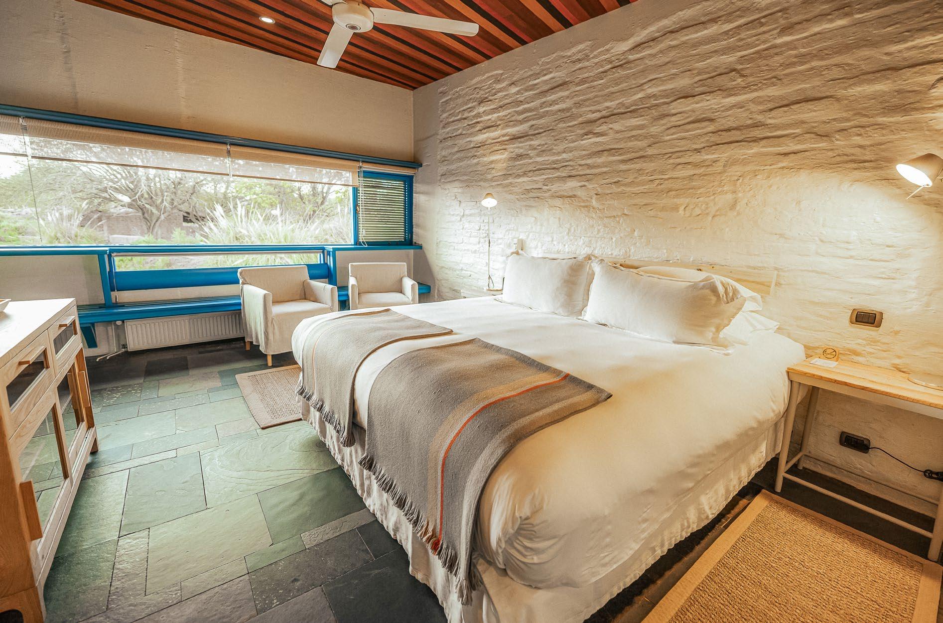 El lodge se despliega como un oasis dentro del oasis. Sus jardines no son domesticados, sino silvestres y el agua corre hacia cuatro piscinas que invitan a una inmersión lenta, contemplativa, en el contraste de un territorio donde cada gota es un tesoro. Hay sauna, baños de vapor y jacuzzis al aire libre, perfectos para mirar el cielo nocturno que aquí parece más cercano que en ninguna otra parte del mundo. Pero más allá de estas comodidades, lo que sorprende es la sensación de amplitud. Sus 50 habitaciones fueron diseñadas para amplificar el silencio, la privacidad y el horizonte. No hay televisores, ni radio, ni minibar. El lujo aquí es descansar con la ventana abierta y sentir que el universo entero es la compañía.