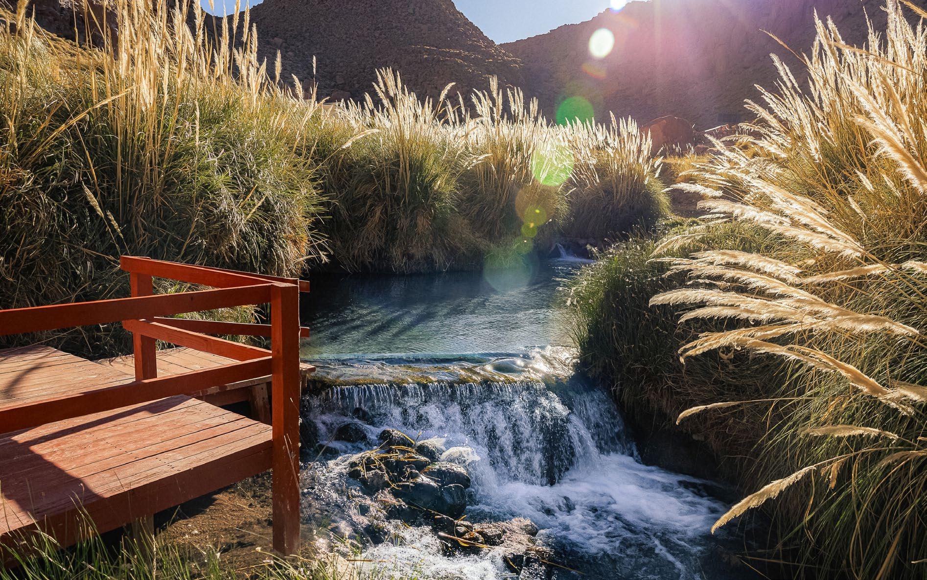 Esa definición cobra todo el sentido al caminar en pequeños grupos junto a ellos, mientras señalan la textura de una roca volcánica o explican el ritual que un pueblo originario aún mantiene en secreto. Uno de los privilegios exclusivos de Explora es el acceso a la Reserva Natural de Conservación Puritama, un santuario de 7,500 hectáreas en medio del desierto donde el agua brota en termas cristalinas. Entre cañones y vegetación insólita, los huéspedes pueden bañarse en piscinas naturales de aguas tibias y almorzar en un entorno que parece un espejismo.