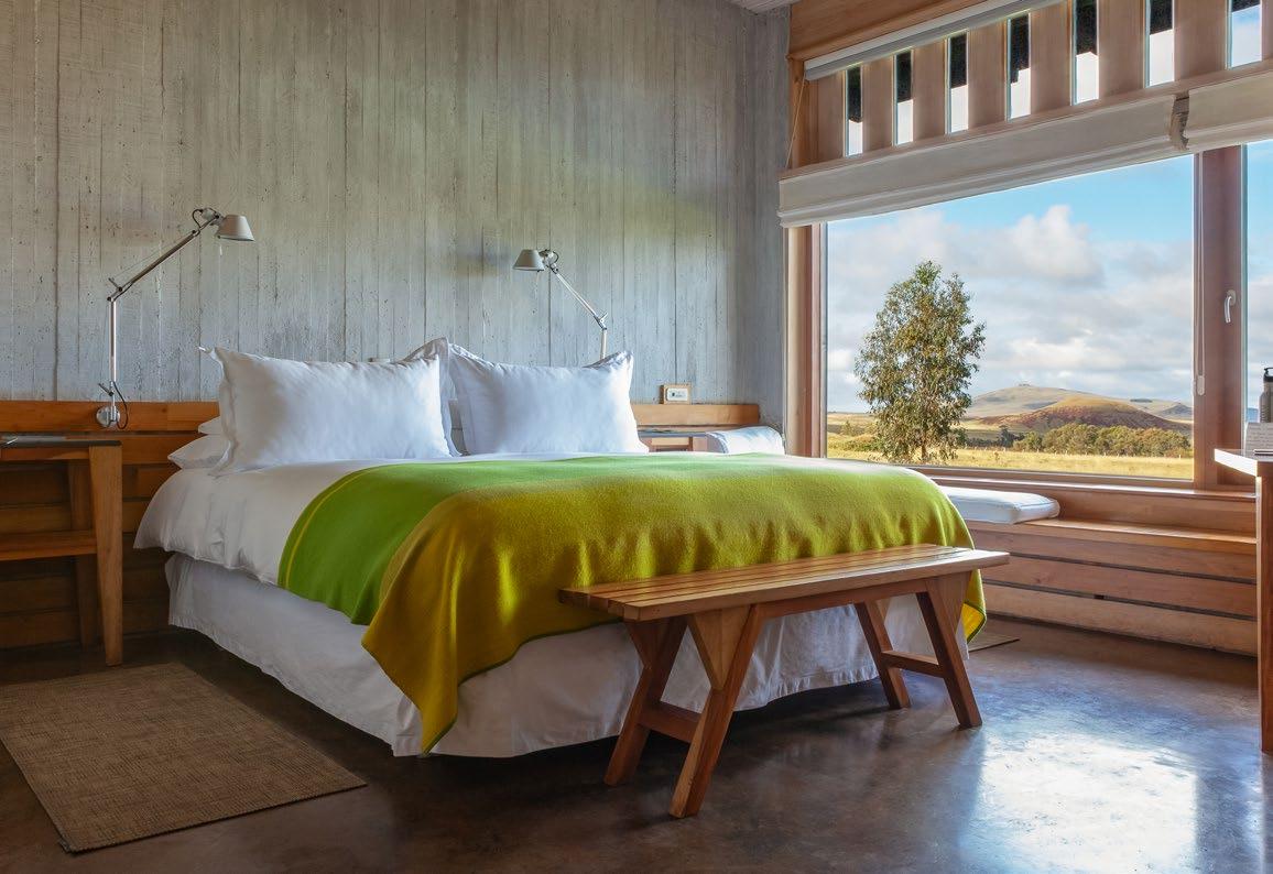 En el centro de este escenario cargado de historia, mito y resiliencia, surge Explora Rapa Nui, un lodge que interpreta con fidelidad el sentido de estar en el ombligo del mundo. Ubicado a ocho kilómetros de Hanga Roa, rodeado de praderas abiertas con vistas infinitas al Pacífico, su arquitectura se inspira en la aldea ceremonial de Orongo y dialoga con el paisaje en silencio. El lodge cuenta con certificación LEED, es Empresa B y Carbono Neutral y encarna una idea de lujo acorde al siglo XXI: un lujo sobrio, sustentable, profundamente conectado con el territorio. Aquí no se trata de ostentación, sino el lujo de lo esencial. Las habitaciones, minimalistas y acogedoras, invitan al descanso profundo después de un día de exploración. La gastronomía, ligera y nutritiva, se basa en productos locales: pescados frescos, vegetales de la isla, preparaciones ancestrales como el curanto, siempre acompañados de una cuidada selección de vinos chilenos elegidos por el Master Sommelier Héctor Vergara.