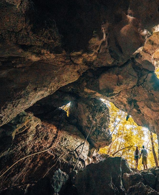 Página opuesta. Arriba. Elegancia nativa en cada espacio de Explora Rapa Nui. Abajo. Todas las aventuras Explora revelan nuevos horizontes. En esta página. Exploraciones guiadas con alma rapanui.