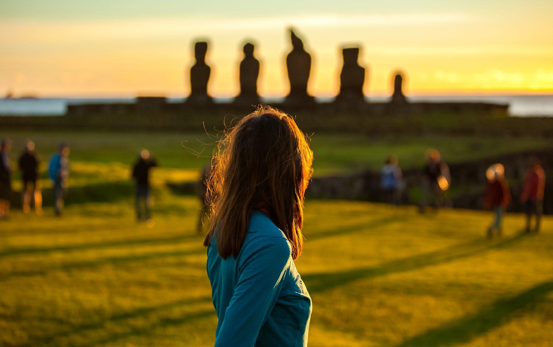 Nada prepara al viajero para la primera visión de Tongariki al amanecer. Quince moái alineados sobre una plataforma de ciento cincuenta metros resumen la grandeza de esta civilización y aguardan la salida del sol, como si todavía cumplieran la función para la que fueron erigidos: custodiar el orden cósmico desde la frontera entre tierra y océano. Las olas golpean con violencia la costa y en esa sinfonía marina emerge la claridad dorada que despierta lentamente los rostros de piedra. Los guías de Explora cuentan que Tongariki fue arrasado por un tsunami en 1960 y reconstruido en los años noventa con un rigor arqueológico extraordinario. Más allá de su restauración, lo que sobrecoge es su orientación astronómica: cada estatua parece alinearse con los movimientos solares, uniendo el calendario humano con el pulso del cosmos. El viajero descubre, entonces, que no está frente a ruinas estáticas, sino frente a un sofisticado sistema cultural comparable con Stonehenge en Inglaterra o Chichén Itzá en México, en un cielo más nítido que en cualquier otro rincón del planeta.