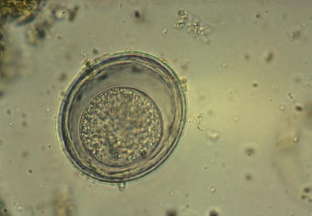 Jennifer Moya Vaquero Asistente técnico veterinario y técnico de laboratorio Laboratorio de referencia en Veterinaria Ciab Toxocara canis y T. cati son los agentes etiológicos responsables de la toxocariosis en carnívoros domésticos, el perro y el gato, respectivamente, y afecta sobre todo a cachorros menores de tres meses de edad. La toxocariosis es una infección endoparasitaria de nematodos producida por la diseminación de las larvas de Toxocara canis (perros) o T. cati (gatos). Habitualmente parasitan el intestino delgado de dichos animales. Estos parásitos se reproducen en grandes cantidades; sus hembras ponen entre 150 mil y 200 mil huevos/ día, que son eliminados con las heces y al cabo de dos a tres semanas se tornan infectantes. Los huevos presentes en las defecaciones pueden ser ingeridos accidentalmente por los humanos (zoonosis), con más frecuencia por los niños, y la infección puede provocar una enfermedad por la larva migrans visceral (LMV), que afecta a hígado, corazón, pulmón, músculo, ojo y cerebro de las personas. Los recintos llenos de arena para los niños, donde los gatos suelen defecar, son muy peligrosos. Los huevos pueden ser transferidos directamente a la boca si un niño juega en bancos de arena contaminada o la come. Una vez tragados, los huevos maduran en el intestino. Las larvas atraviesan la pared intestinal y la sangre las disemina. Las larvas pueden seguir vivas durante varios meses, causando daño al migrar a los tejidos y al provocar inflamación alrededor de estos.