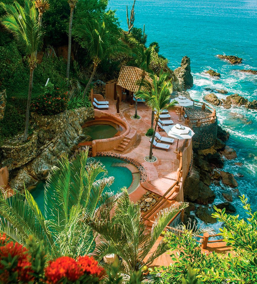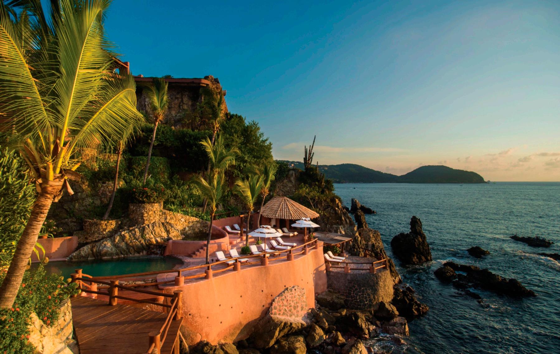 La casa que canta: Epítome de elegancia, con sus albercas de borde infinito que se funden con la bahía, terrazas privadas con vistas espectaculares al océano Pacífico, acceso directo a la playa y un restaurante delicioso. Thompson Zihuatanejo, a beach resort: En la codiciada playa La Ropa, ofrece un servicio impecable en una ubicación inigualable. Marea Beachfront Villas: Sus espectaculares villas privadas frente al mar ofrecen un ambiente exclusivo y privado.
