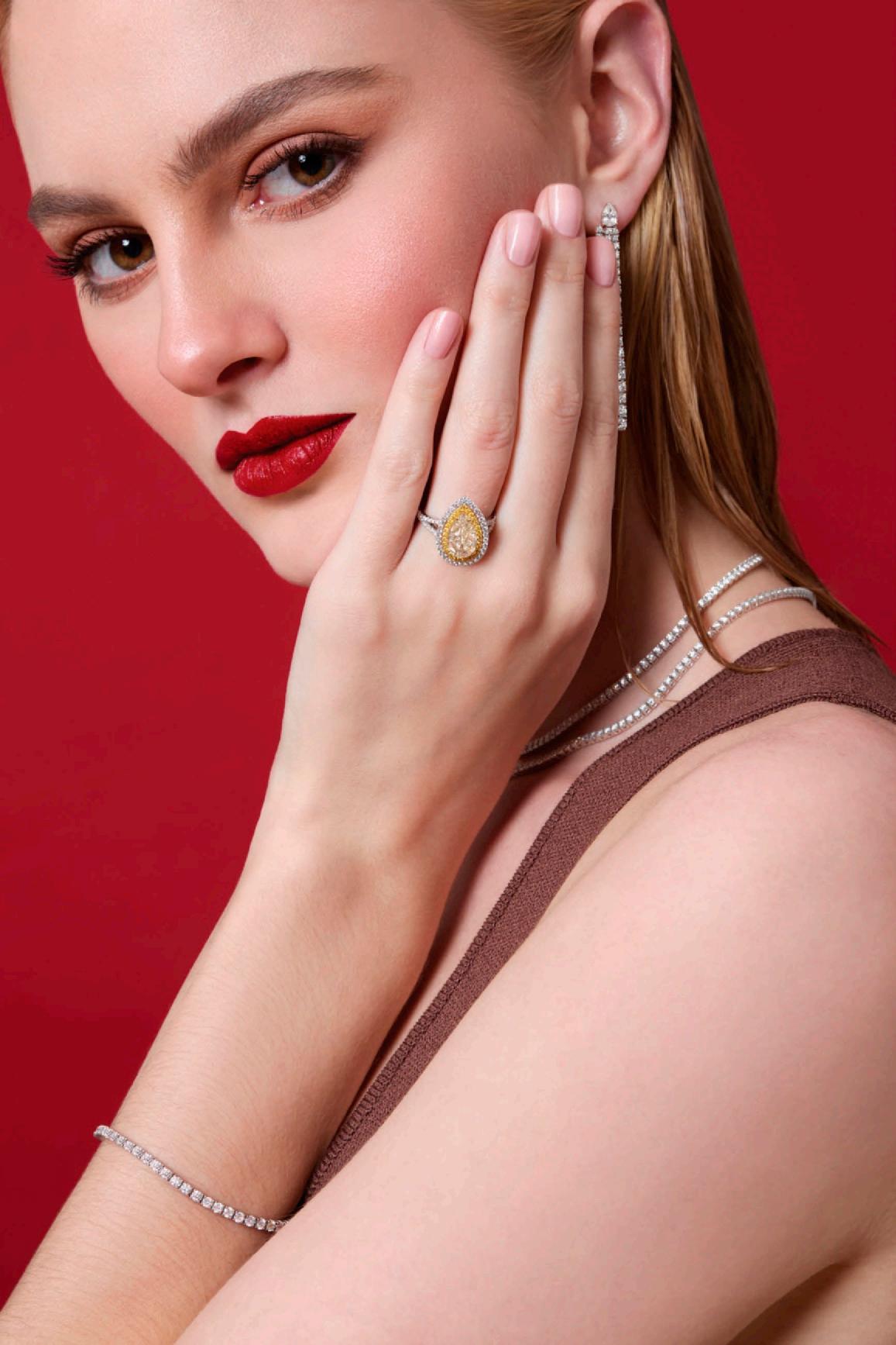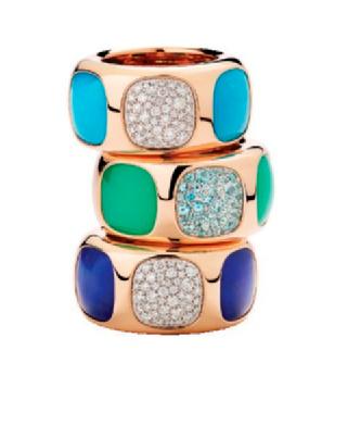 Look total, Chanel Joyas de la colección Ice Cube de Chopard, Juego de arracadas, dijes, anillos y brazaletes en oro ético amarillo y blanco con diamantes.