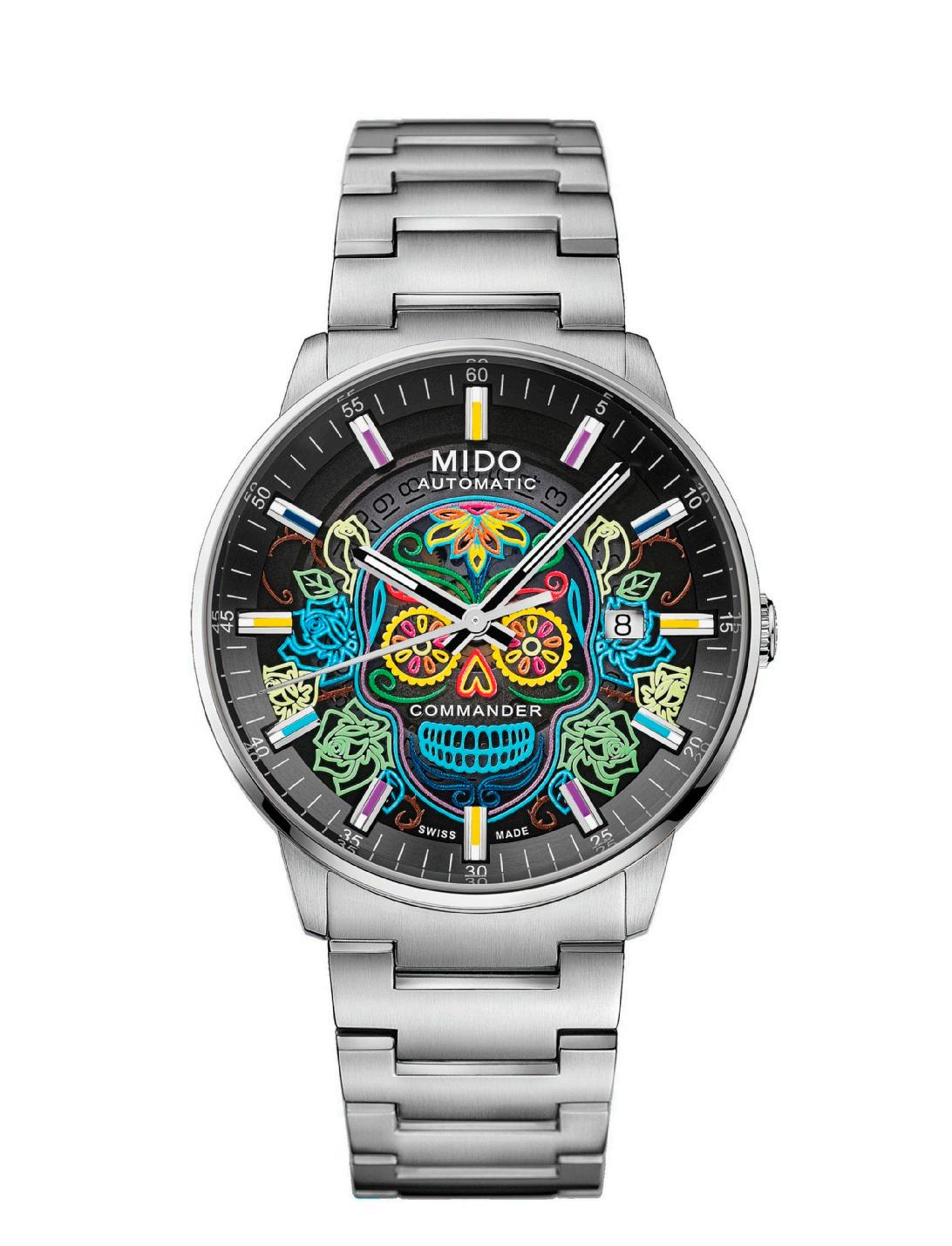 Por sexto año consecutivo, Mido nos sorprendió con una pieza de edición especial inspirada en México, justo a tiempo para celebrar el Día de Muertos. El Commander Gradient Catrines es una pieza que, sin duda, no pasará desapercibida, celebrando esta festividad mexicana con colores y luz que, gracias a Super-LumiNova®, lucen de manera distinta en la luz y oscuridad.
