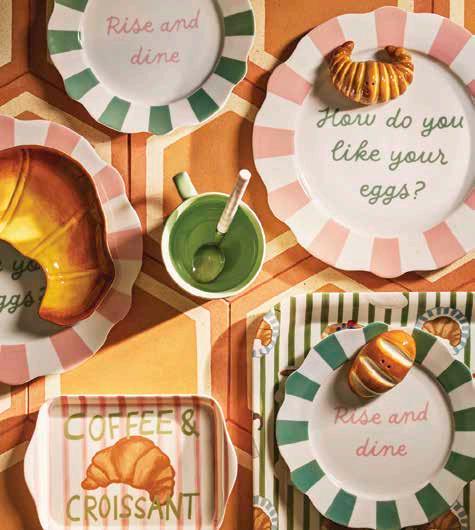 ¿Acaso hay algo más lindo y relajante que una comida casual con la familia o los amigos? Es momento de recrear “el espíritu despreocupado del verano italiano: una celebración al aire libre llena de matices vibrantes, sabores y momentos de felicidad”. Sólo necesitas agregar a tu clásica vajilla blanca un set de platos con aire mediterráneo o motivos gastronómicos, como limones, naranjas o jitomates. Otros detalles tan sencillos como paños estampados, manteles individuales, portavelas –y hasta vegetales como elementos decorativos– convertirán tu mesa en el escenario perfecto para tus reuniones veraniegas bajo el sol. Y si tu vibra es más parisina, haz de tus acogedoras mañanas de domingo un auténtico placer con divinos platos impresos con croissants y frases divertidas en el idioma más romántico del mundo.