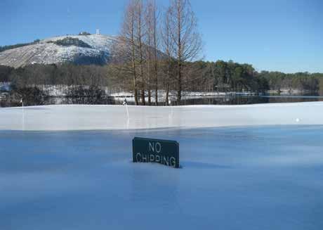 Greetings Turf Pirates and welcome back to the sandy beaches and warm waters of the Ancient and Honorable Tribe of Turf Pirates. Spring is upon us, and it has been a pretty tough winter across the kingdom this year and as such I thought we should walk through the topic of snow days. To our Northern Cousins you deal with big snow all the time. Snow falls you move it about, the courses are closed and life moves forward. There is after all money to be made in snow removal if you have the spirit for it. The Southern branch of the family, however, we are not so well versed in snow culture. Snow pictures are rare for deep south courses so naturally when we get the chance to walk the course in snow and capture a few images well every true Turf Pirate has a few good snow pictures. It was these pictures and a recent walk in the snow on course at the Bluegrass Yacht and Country Club just north of Nashville that was the muse to this spin. Southern Turf Pirates already know that I had gone to the grocery store and bought milk, eggs and bread and enough beverages to last the month as we assume with any snow fall, civilization may collapse. I also stopped off at Waffle House on the way to Tennessee, IYKYK. Snow days are chances to think differently. To reflect back on each decision that has brought us to this unique moment in time and carefully think about what we will do next. In big philosophical terms it’s a chance to take it all in and make each step intentional (unless you want to be the star of a viral Youtube video). It is also a chance to spread ice melt and explain that science to a bunch of non-believers, as well as try out your snow removal skills in big and small ways. You may also