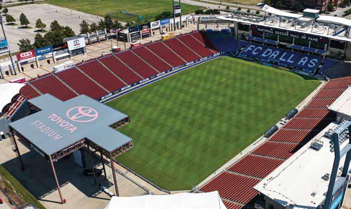 approach, aiming for a “cleatin, cleat-out” surface similar to baseball infield management to minimize kick-ups and keep the surface smooth. Looking ahead, Reed is considering converting the training fields to Latitude 36®. “It could be the grass, or it could be how we're managing, fertilizing and the inputs we're putting on it, but it's pretty simple. Latitude 36 is definitely high on a lot of guys' lists. A lot of them are using it in their facilities and stadiums, so yeah, it's definitely one of the wellknown grasses in sports.”