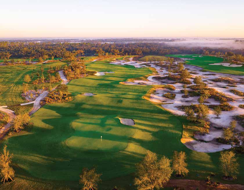 for a mix of technical precision and creative intuition. Together, Kennelly and Alexander are translating the design’s naturalistic intent into agronomic reality, for example introducing Zoysia grass across tees, fairways, and greens—a bold and unique choice in Florida’s climate, but one that promises a firm, sustainable turf.