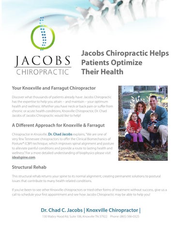 Jacobs Chiropractic Helps Patients Optimize Their Health Your Knoxville and Farragut Chiropractor Discover what thousands of patients already have: Jacobs Chiropractic has the expertise to help you attain – and maintain – your optimum health and wellness. Whether you have neck or back pain or suffer from chronic or acute health conditions, Knoxville Chiropractor, Dr. Chad Jacobs of Jacobs Chiropractic would like to help!