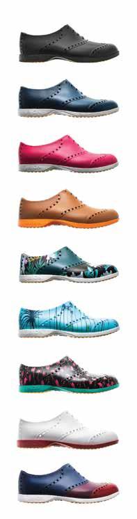 The new line of shoes – men’s and ladies’ – have a gum-rubber sole that is good for grip and comfort. They also have a removable insole for golfers who like to wear orthotics.