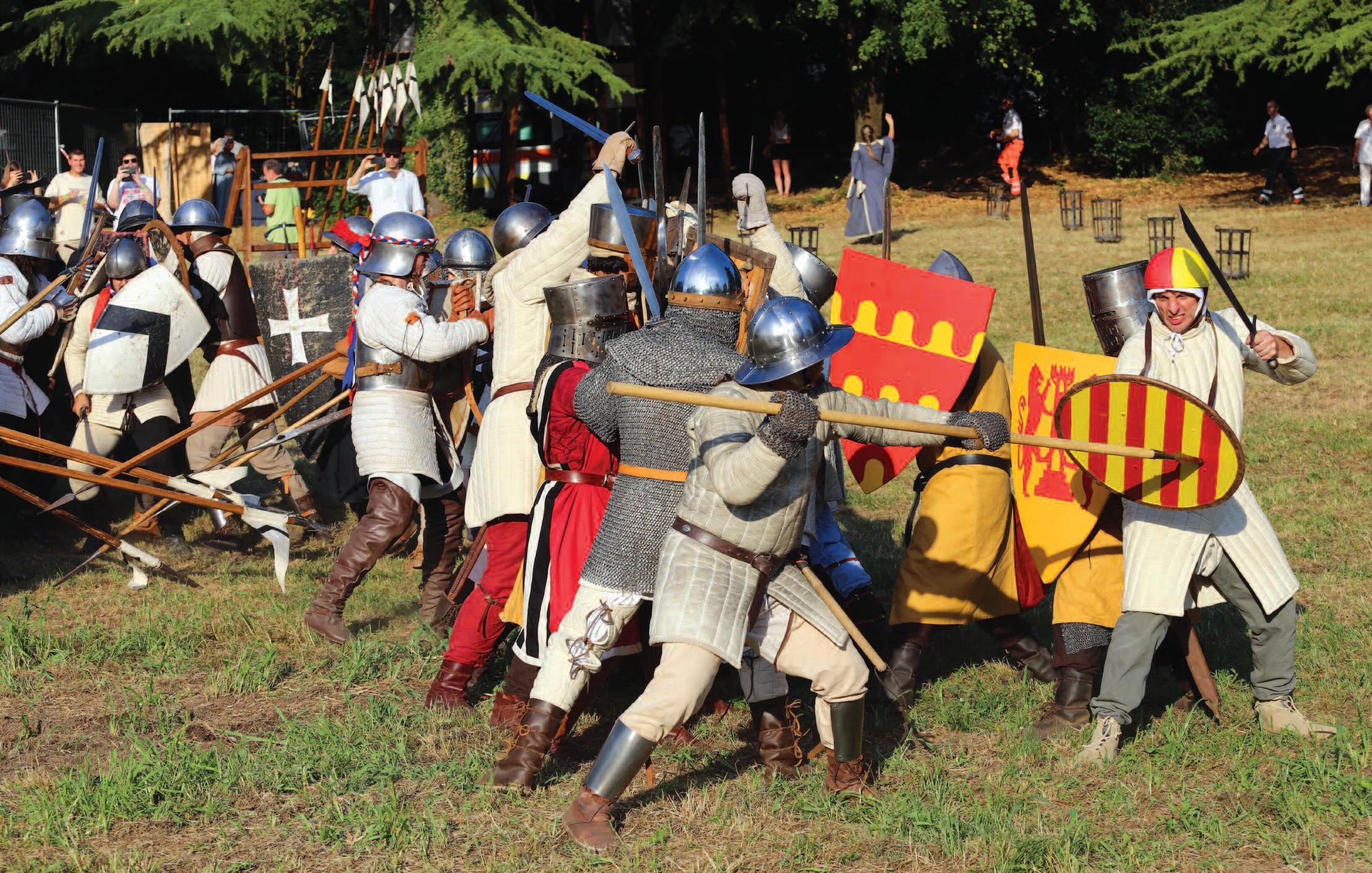 Il combattimento fra alcuni soldati, a San Zenone degli Ezzelini, durante una rievocazione storica organizzata dall’Academia Sodalitas Ecelinorum Aps (ph Heidi Brun)