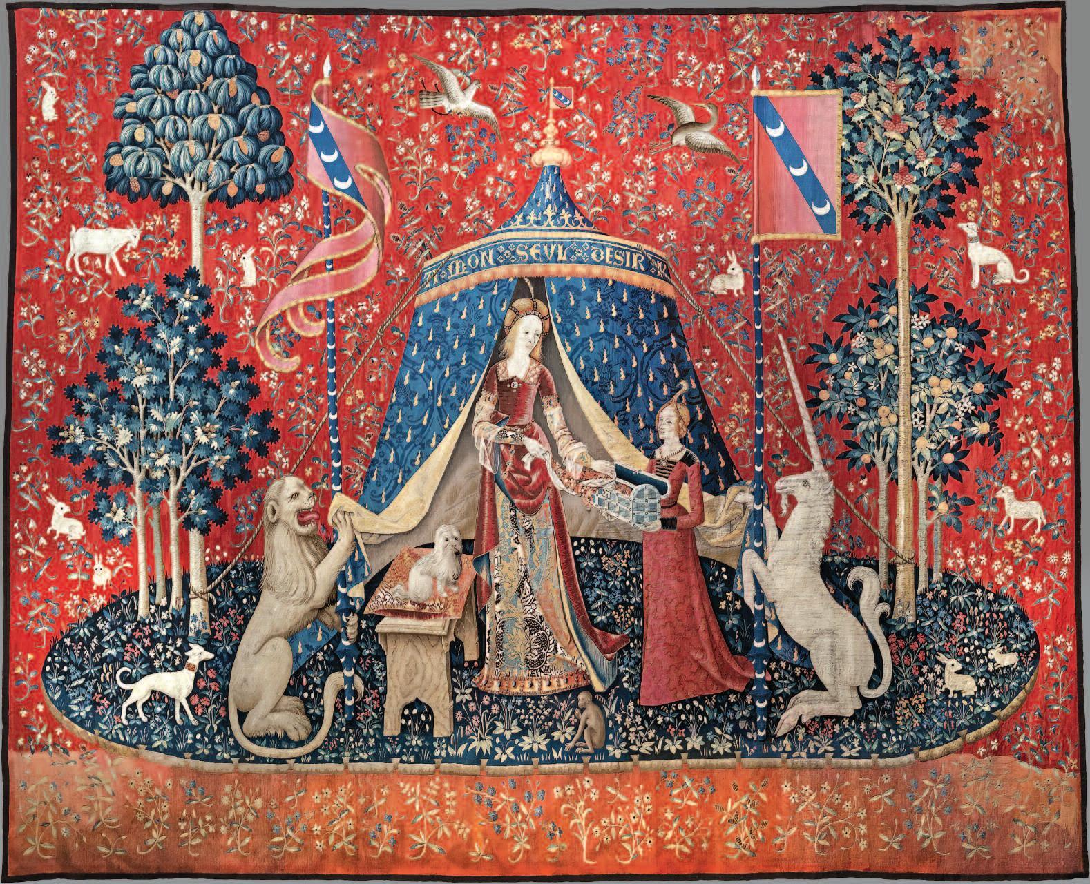 La dama e l’unicorno, arazzo, particolare del pannello A Mon Seul Désir (“Al mio unico desiderio”), fine del XV secolo Parigi, Museo nazionale del Medioevo