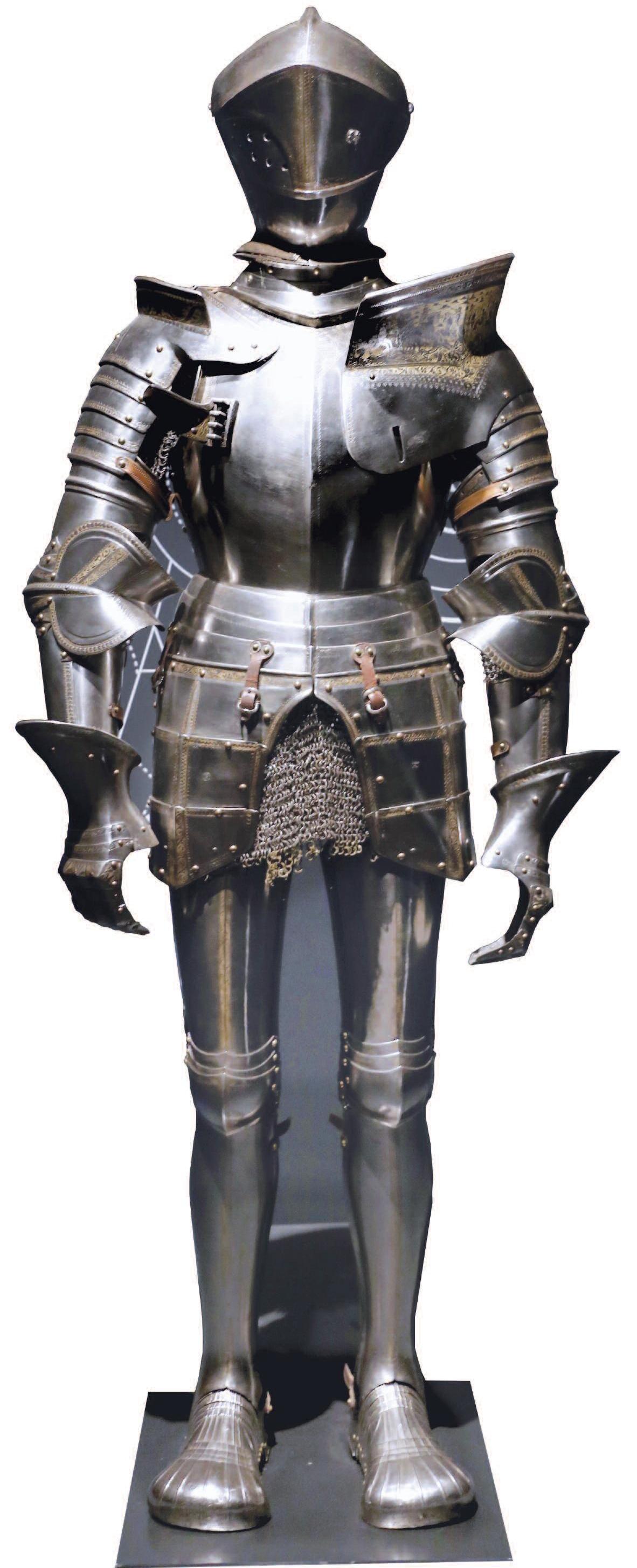 L’estremo pericolo a cui erano esposti i combattenti diede però origine all’evoluzione delle armi: soprattutto delle armature con copertura integrale di piastre; così, nel ’400, il livello tecnico della loro struttura e il trattamento del metallo raggiunsero vette altissime, degne testimonianze della tecnica rinascimentale