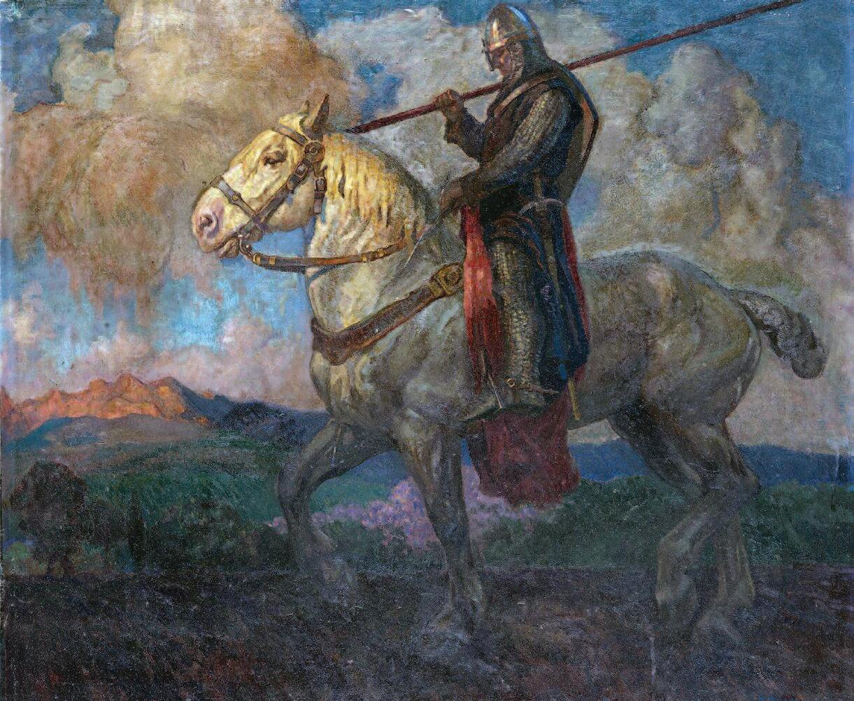 Adolfo Magrini (Ferrara, 1876 - Milano, 1957), Il cavaliere errante, olio su cartone, 1920 circa Collezione privata