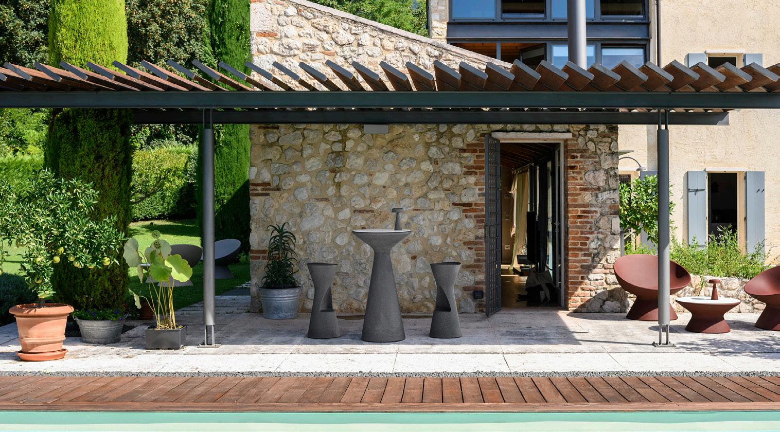 In the contemporary Italian design scene, outdoor furniture – particularly that intended for the poolside area – is taking on an increasingly central role, transforming itself from a simple seasonal accessory to a true extension of the living space. The current trend is to design exteriors as ‘open-air rooms’, with as much attention to detail as interiors. Materials, colours and volumes are selected to create visual continuity and harmony with the architecture of the house, without sacrificing functionality or weather resistance. By the pool, traditional sun loungers are giving way to more sophisticated and versatile solutions: oversized daybeds with removable cushions, chaises-longues with wooden frames and nautical rope weaving, as well as modular outdoor sofas that can be arranged to create real outdoor lounge areas. Low tables, enveloping seats, and benches integrated into the surrounding greenery complete the setting, transforming the environment into an open-air living area where you can relax, read, have lunch or entertain guests. Particular attention is paid to the choice of materials: painted aluminium, teak treated for outdoor use, wo-