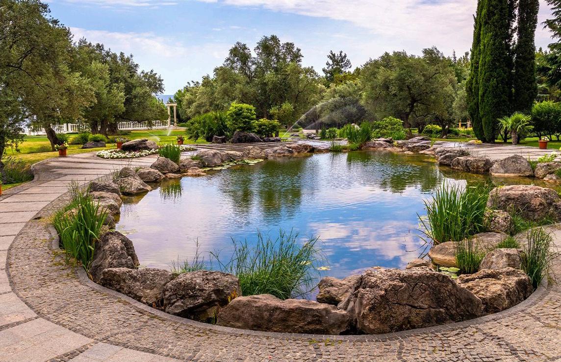 Clean, essential, geometric design goes hand in hand with biophilic design applied to swimming pools. Organic shapes with irregular or curved edges that mimic the natural contours of lakes or ponds, and the use of natural materials such as stone, wood, pebbles and sand with integrated vegetation characterise natural pools and bio-pools. Biophilic design (from the Greek words ‘bio’ = life and ‘philia’ = love, attraction) is an applied science that uses the latest discoveries on the relationship between humans and nature to design artificial environments. It is well known that biophilic design reduces stress, stimulates creativity and clarity of thought, improves our mental and physical well-being and accelerates healing. Integrating the principles of biophilic design into the furnishing and design of outdoor spaces – particularly around the pool – means go-