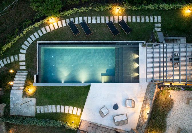ing, health and environmental awareness that are spreading both in Italy and the rest of the world. Geometric, rectangular or even square, swimming pools with clean edges and precise corners are becoming increasingly common, as are elegant infinity edges that blend into the horizon. Revolutionary ideas and innovative solutions that can transform the human experience are now more welcome than ever. Rectangular shapes remain a timeless classic, not least because of their versatility, which allows for efficient space management, with subdivisions for different functions. The pandemic has prompted many people to re-evaluate what is essential and functional for well-being, and minimalist designs respond to this trend by eliminating the superfluous. There is therefore also room for smaller pools, but with multiple accessories and hi-tech features, to be installed in any outdoor or indoor environment.