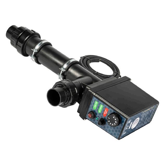 MAX DAPRÀ SAS offers the D-EWT-NC compact electric heat exchanger for heating swimming pools, hot tubs and similar systems. Consisting of a pressure-resistant housing made of non-flammable plastic, it is available with Incoloy 825 or titanium heating elements and is equipped with a compact system with a latest-generation, long-life AEG contactor. It is equipped as standard with a 0-40 °C control thermostat, a 50 °C safety thermostat, a flow switch, a green LED indicator light to show when the heating elements are in operation, and an on/off switch.