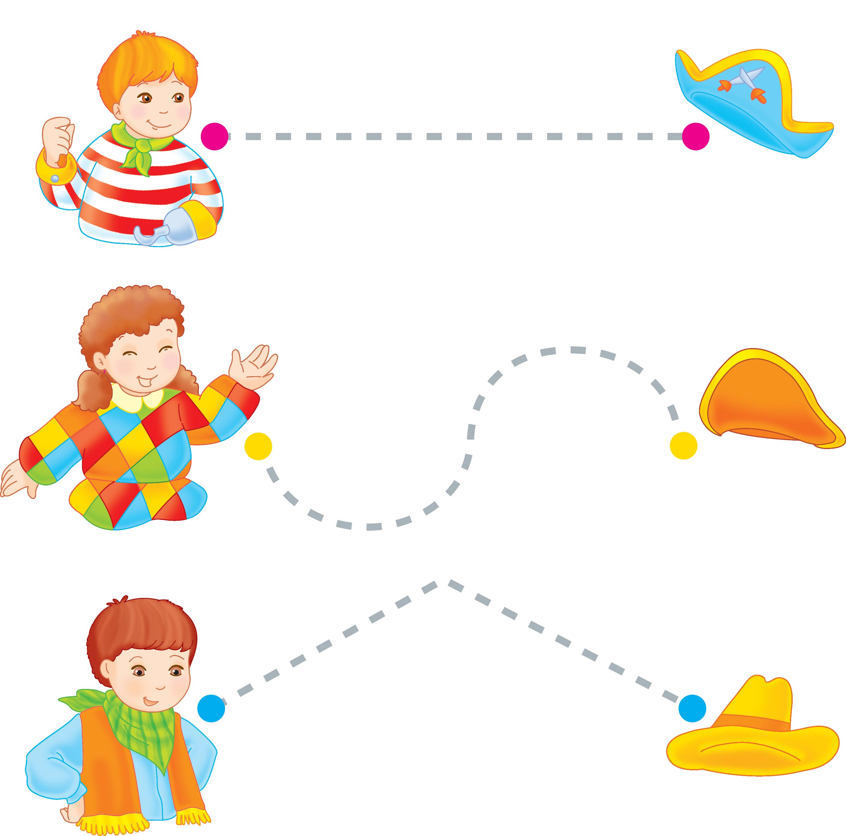 Unește fiecare personaj cu pălăria lui.