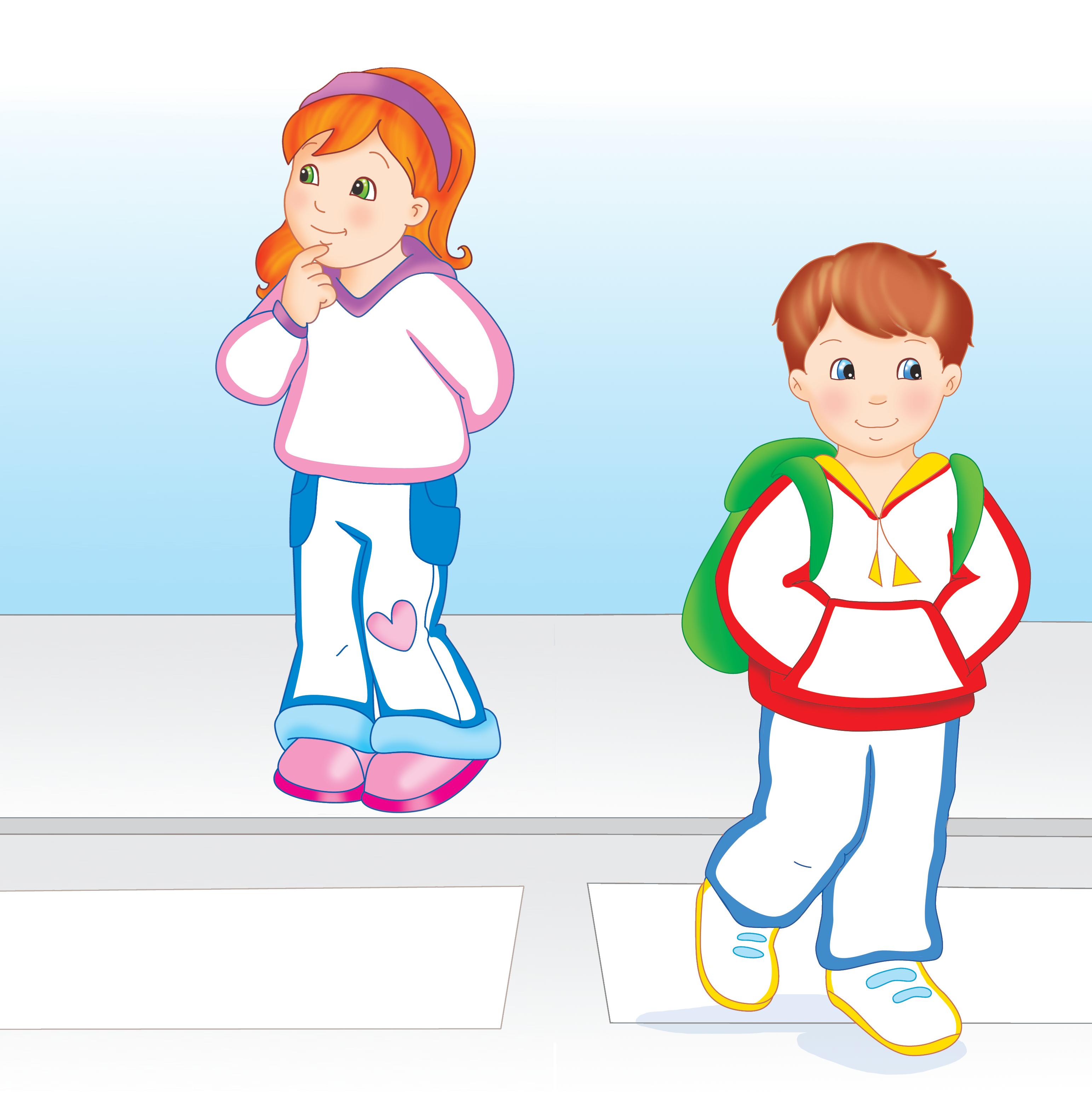 Colorează îmbrăcămintea unuia dintre copii, la alegere.