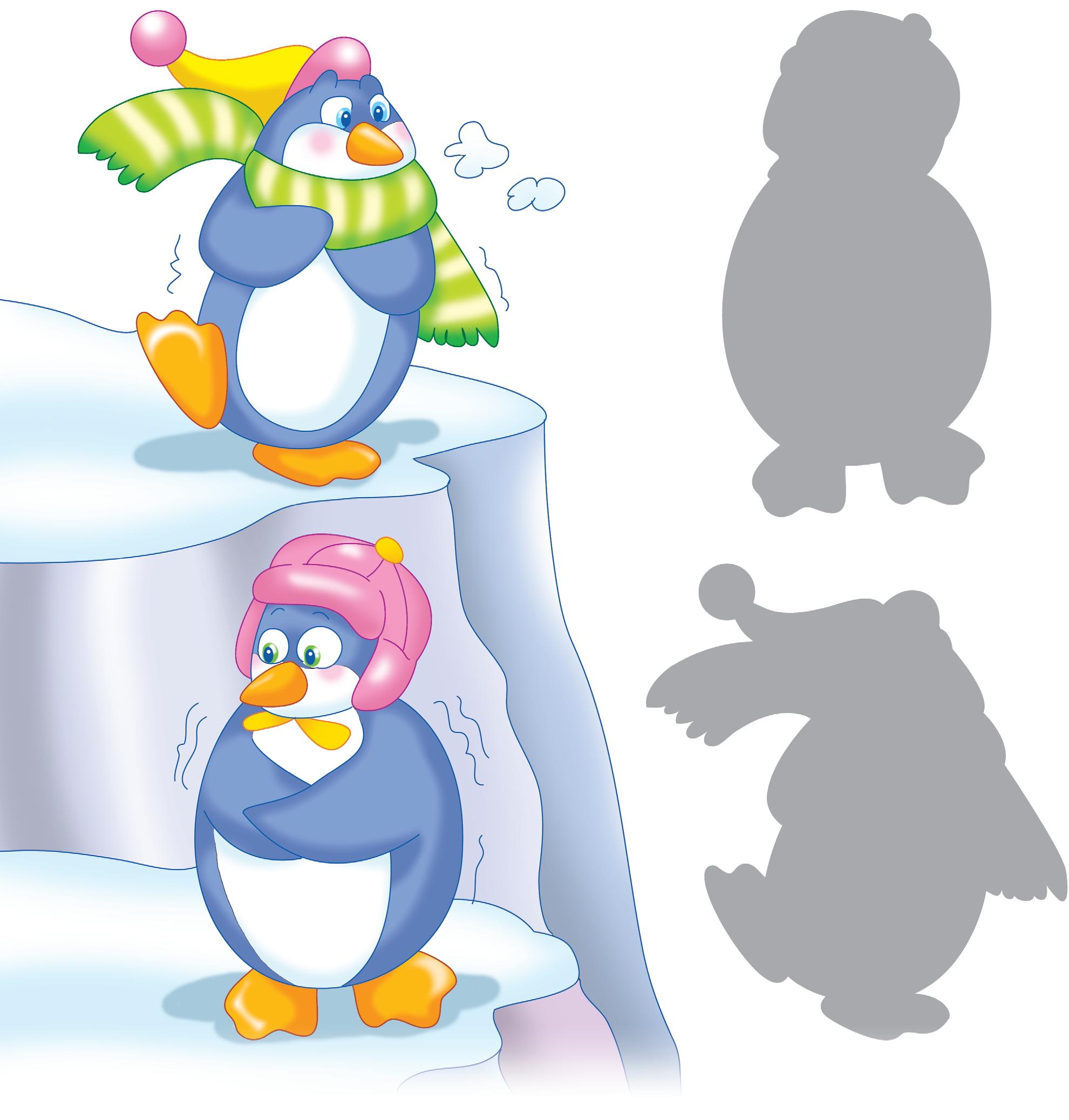 Unește cu o linie fiecare pinguin cu umbra sa.