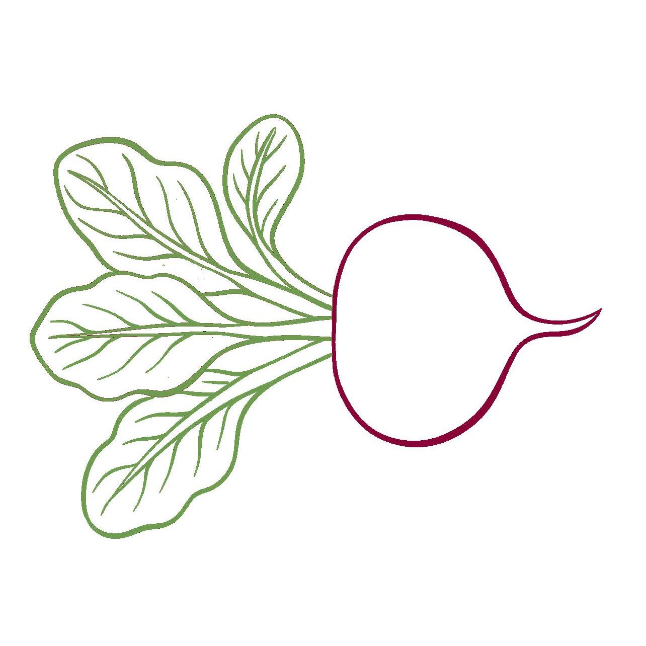 ✿ Trasează, pe linia punctată, ridichea uriașă folosind culorile date pe contur.