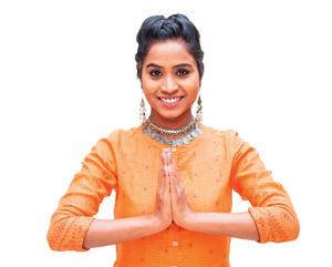a) Namaste (Devanagari nyelven: नमस्ते; formálisan: Namaskar/Namaskaram) kezdetben India területén használt köszönés, amely a tisztelet jeleként a mellkason összetett tenyerekkel való enyhe meghajlásból áll.