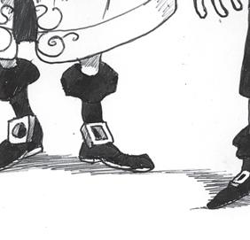 Clopoțelul de la ușa prăvăliei a scos un clinchet și doi clienți eleganți și-au făcut apariția, amândoi îmbrăcați în tunici roșii. Unul era chel și purta ochelari, iar celălalt era rotund ca un globuleț.