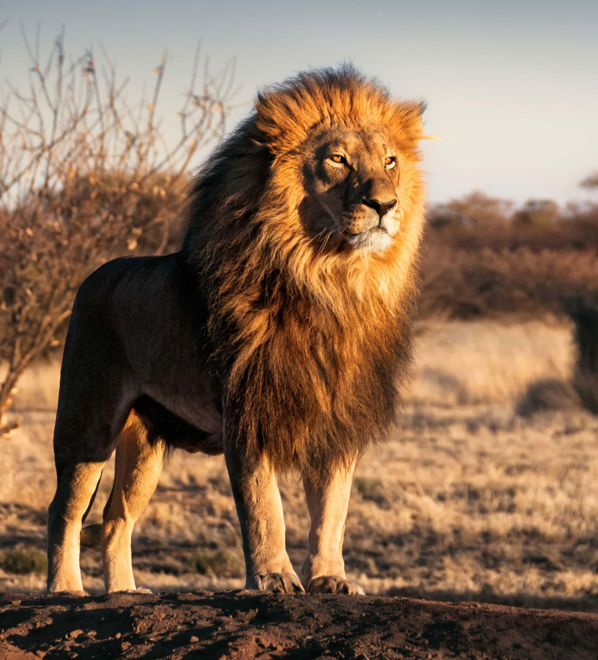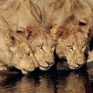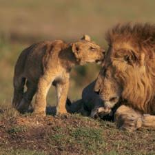 Este felino que vive en la sabana africana es un ágil cazador con dientes muy grandes. Por algo se le conoce como el rey de los animales. Vive en grupo y el jefe defiende a la manada de enemigos e intrusos. Caza otros animales para comer, pero algunos le plantan cara.