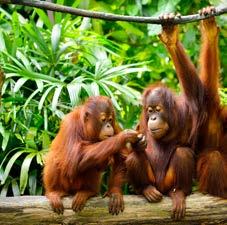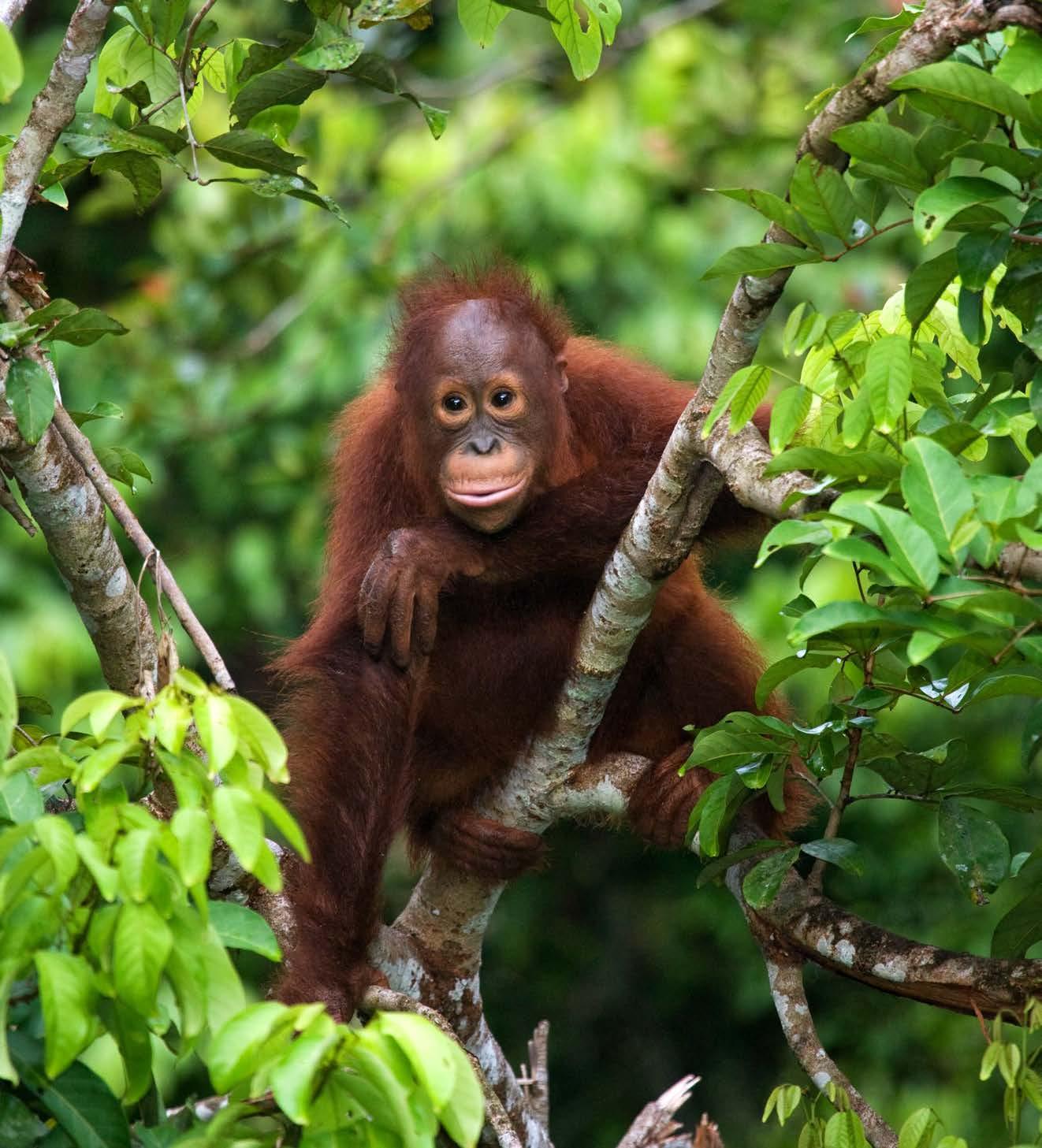 El orangután vive en las selvas tropicales de Borneo y Sumatra. Con sus largos brazos y manos fuertes, se balancea de árbol en árbol