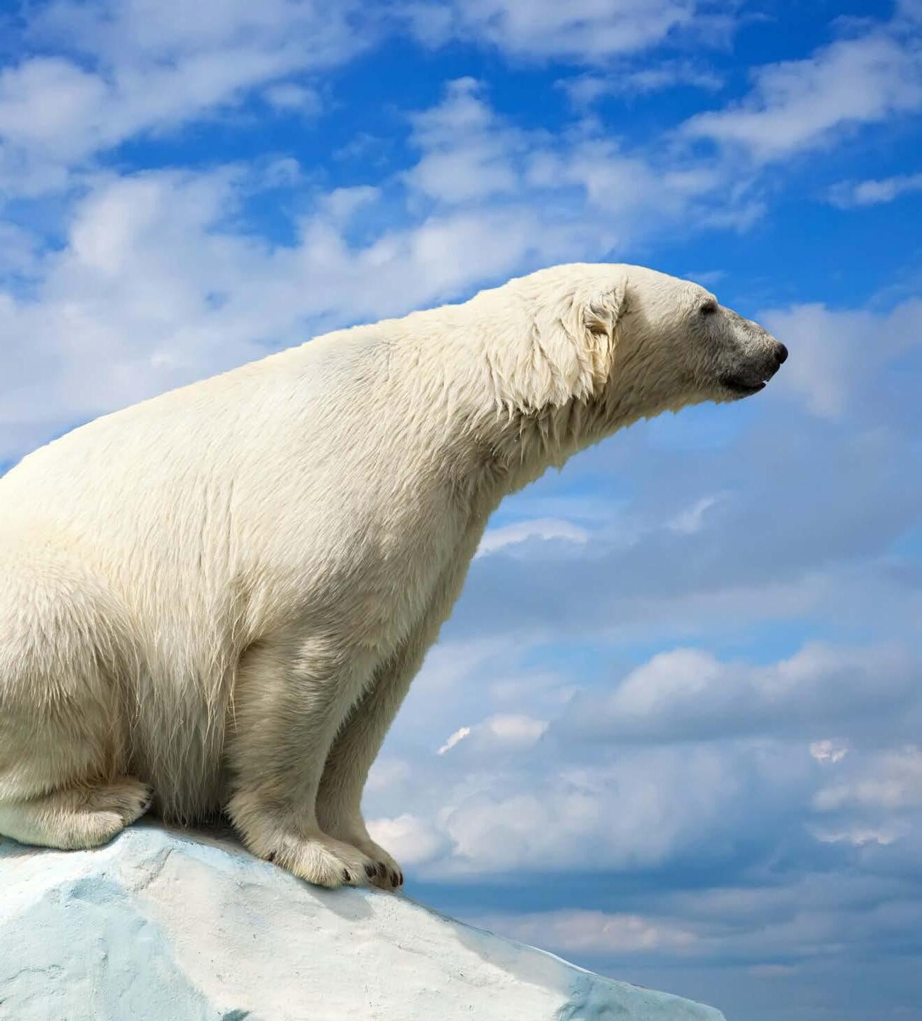 El oso polar vive en las frías regiones del Ártico, donde caza focas en el hielo marino. Su grueso pelaje blanco y una capa de grasa lo mantienen caliente en las temperaturas extremas. Los osos polares son excelentes nadadores