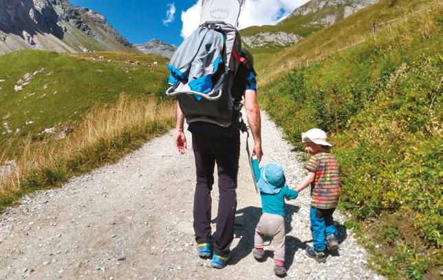 Auch das Wandern mit anderen Erwachsenen, die vielleicht ebenfalls Kinder haben, bietet viele Vorteile, zum Beispiel ein zweites Paar Au-