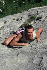 Materiale: 2 friend n.0,5 e materiale per lo zoccolo. Una placca verticale, compatta e perfetta di 300me tri caratterizza la parete dell’Eghen. La via “Prigio nieri dei sogni” la risale interamente, inseguendo una logica appigli per una scalata unica e di gran classe. Arrampicata tecnica e di continuità, esi gente e difficile per tutto l’itinerario. Placche ver ticali e strapiombanti, alternate a strapiombi più accentuati propongono severi passi obbligati. Nel complesso una via di altissimo livello sotto il profilo tecnico, atletico e psicologico, su roccia ottima per tutto l’itinerario.
