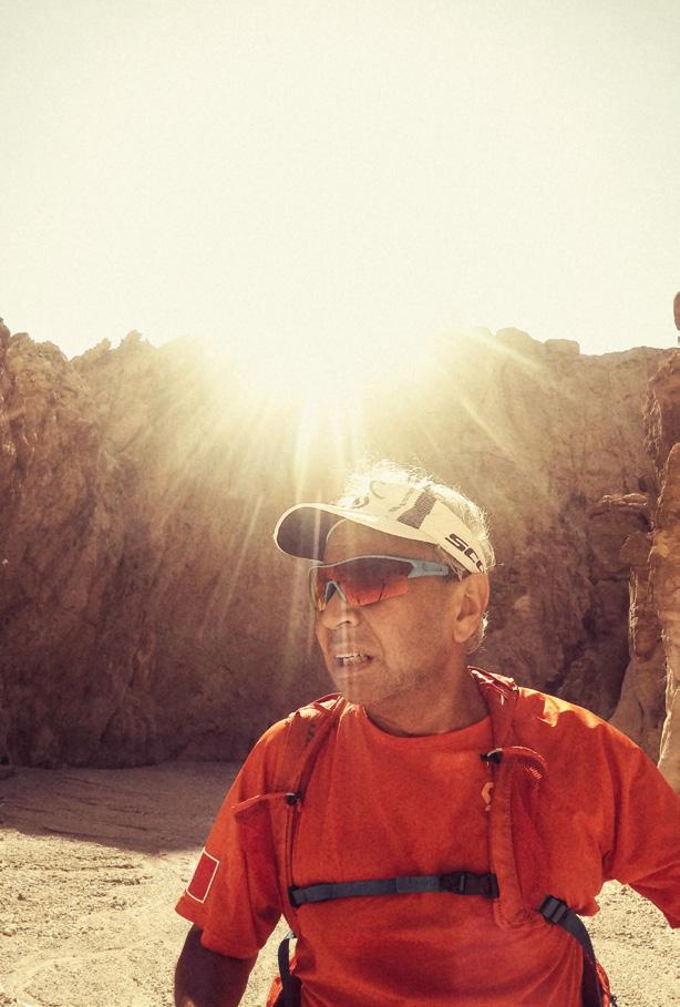 Ammiro e un po’ invidio chi, come Giuliano, ha la corsa nel sangue e la vive come io vivo l’arrampicata, come una grande, intima passione, che non puoi abbandonare. È questo, credo, che ci accomuna. Quel desiderio di esplorare nuovi limiti, nuovi terreni, nuove esperienze in ambienti dove è la natura a comandare. Un richiamo forte che si deve ascoltare, anche se costa grandi sacrifici. Il deserto è uno di questi luoghi, uno dei più severi. Sembra strano che ad affermarlo sia un alpinista, uno che dovrebbe temere più la quota e il freddo che il caldo e le lunghe distanze… ma se mi sono avvicinato, ed è successo, un po’ troppo al limite in passato, tanto da rischiare di non farcela, è stato proprio lì, dove la mancanza d’acqua e il sole che ti sfinisce non perdonano errori e sottovalutazioni.